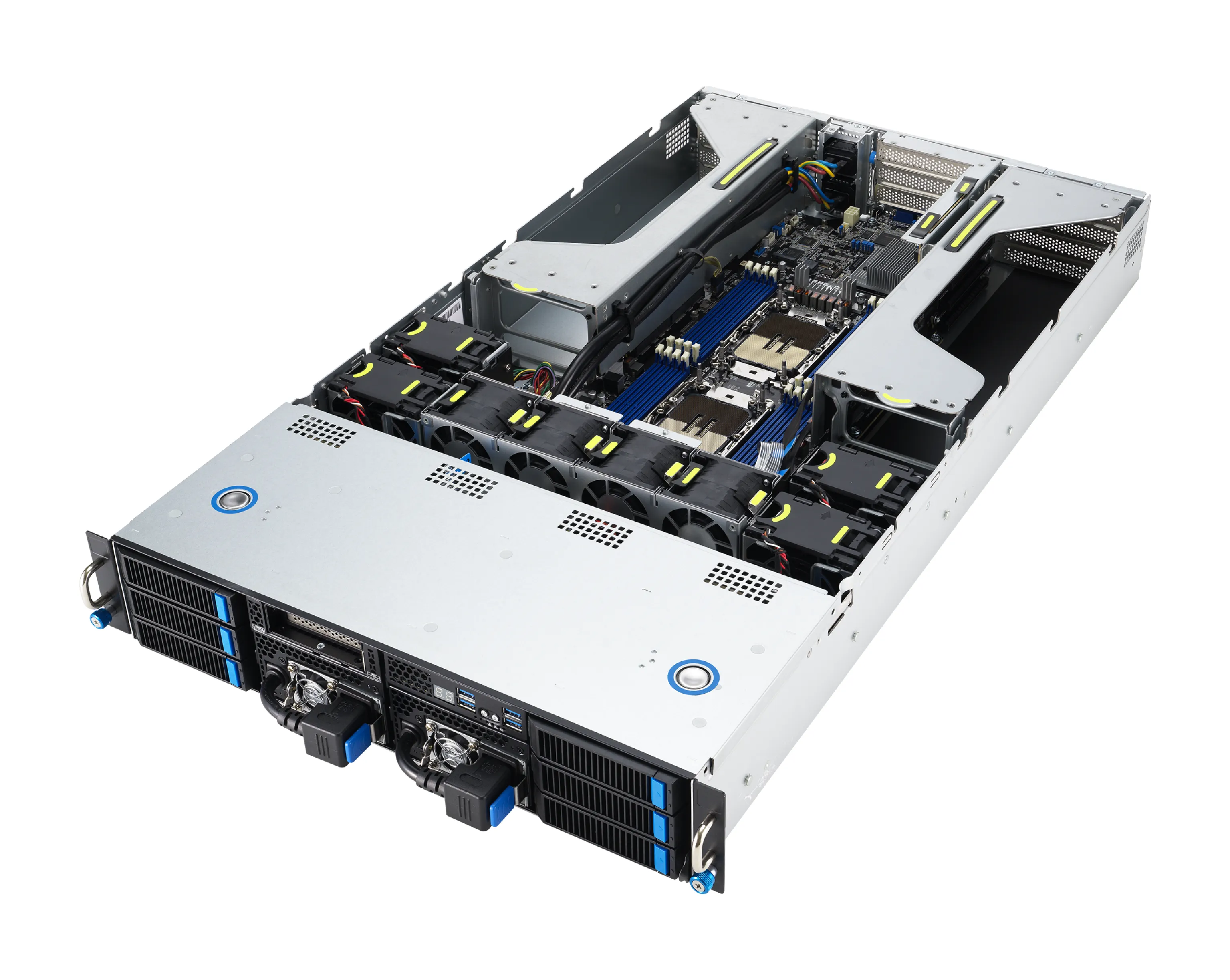 - Дизайн для обслуживания: три панели обслуживаемого доступом без инструментов, вывеска Q‑Code / Port 80, горячая замена вентиляторов, накопителей и питания