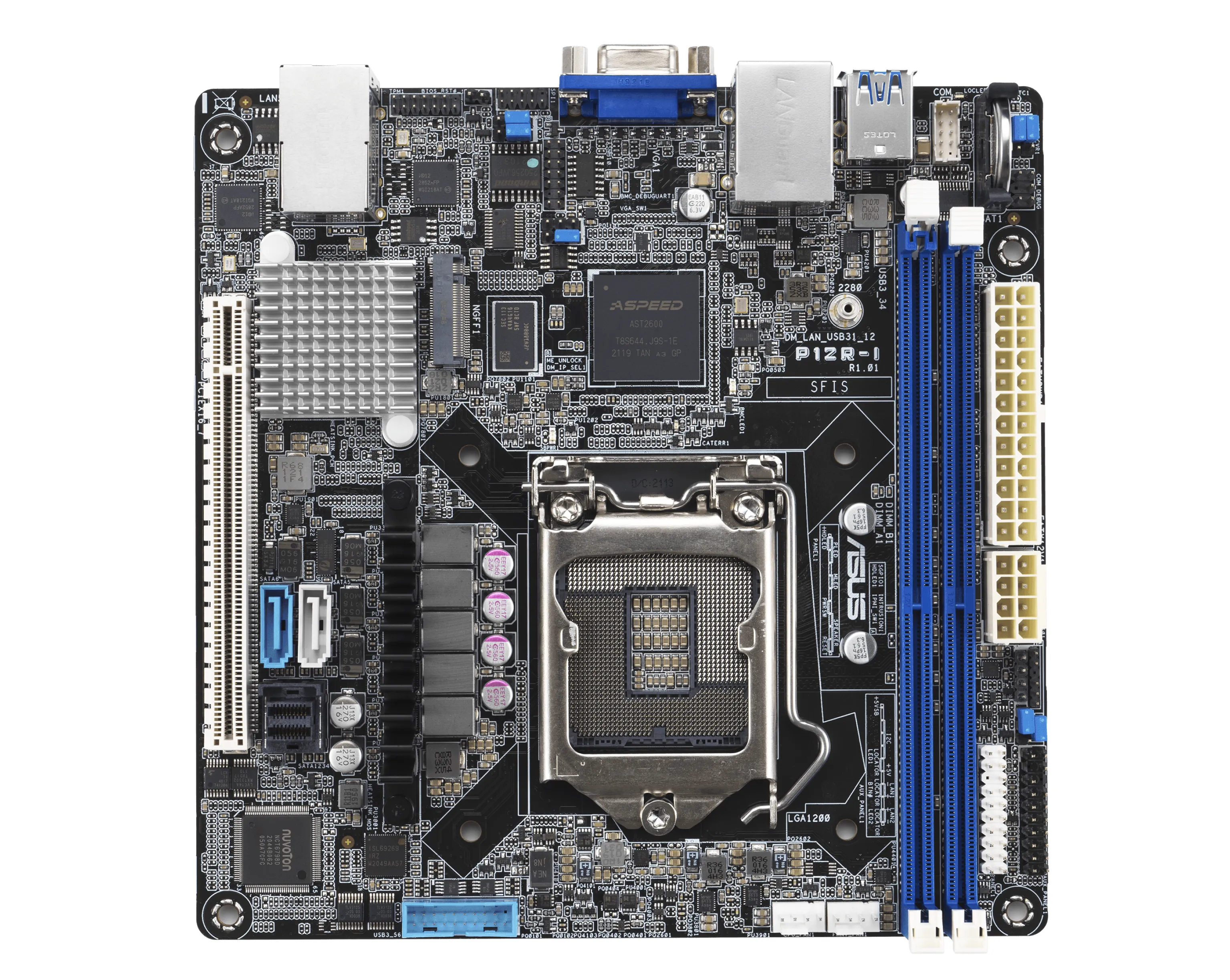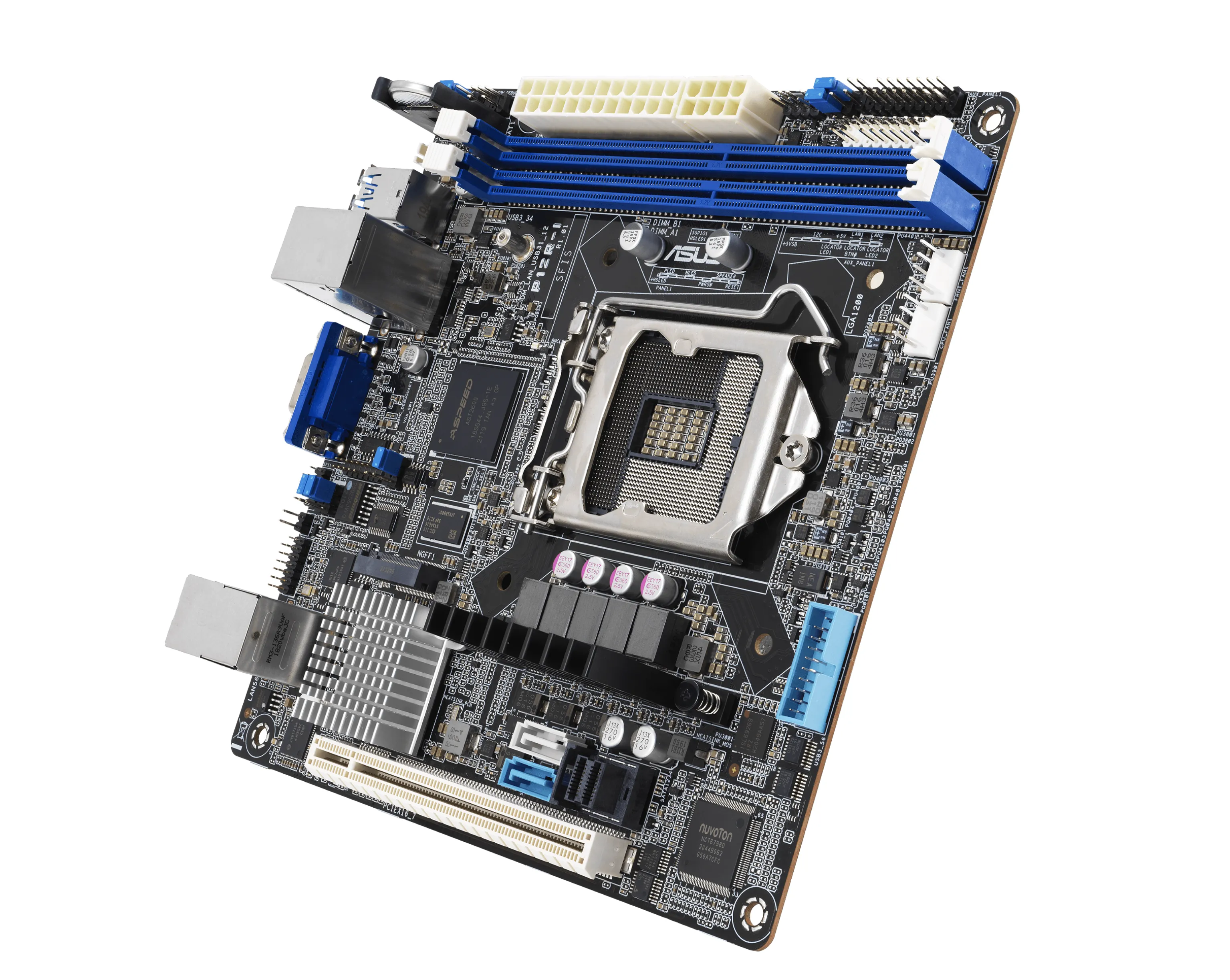 ASUS P12R‑I — это серверная материнская плата компактного формата Mini‑ITX, предназначенная для стоечных систем и плотных решений. Поддерживает процессоры Intel Xeon E‑2300 и Pentium, оснащена контроллером удалённого управления, сетевыми интерфейсами, возможностью подключения NVMe/M.2 и SATA накопителей. Идеальна для малых офисов, задач хранения и серверных башен, где важны размеры и функциональность.