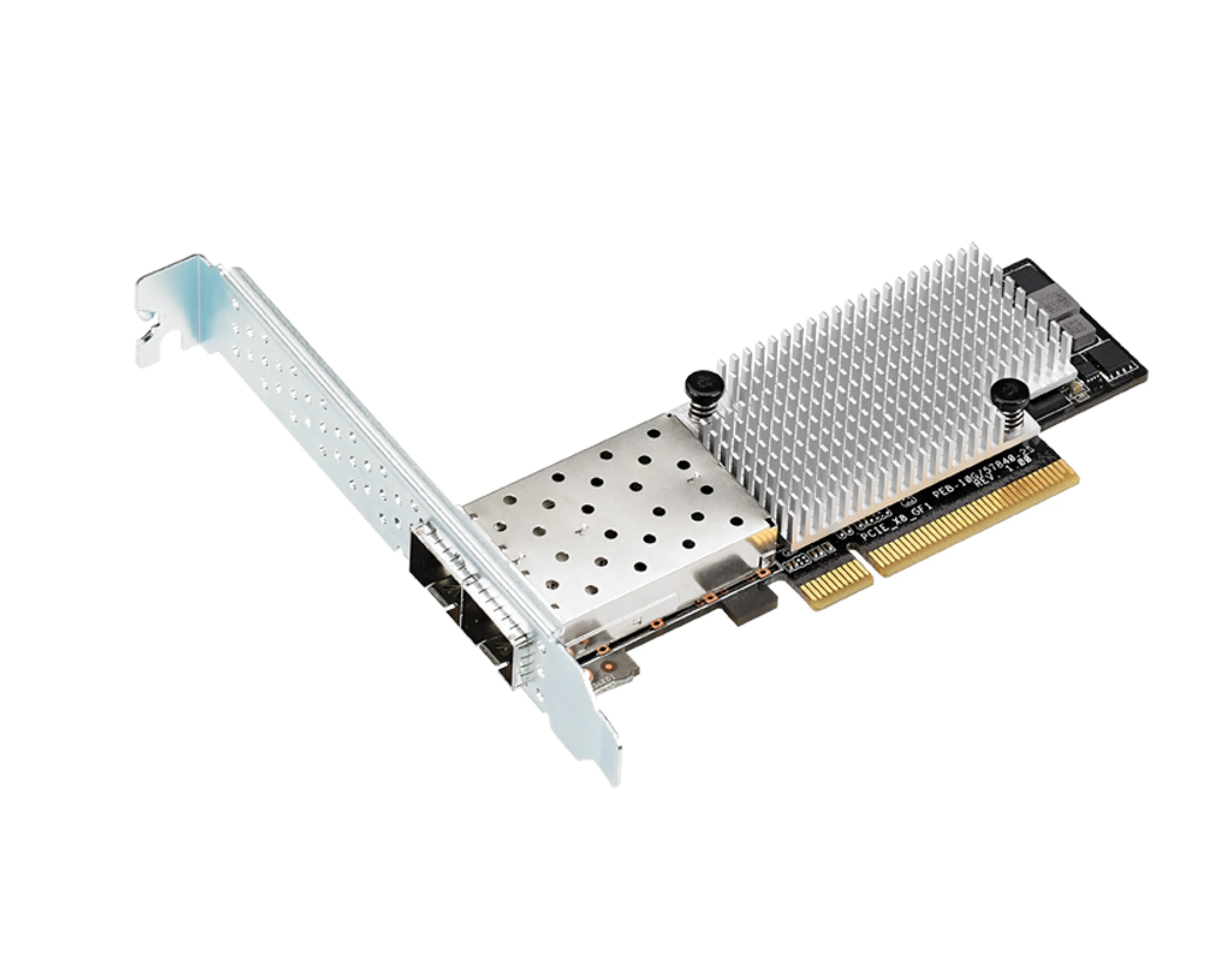 ASUS PEB‑10G/57840‑2S — сетевой адаптер стандарта 10GbE SFP+ с двумя портами, предназначенный для серверов и рабочих станций. Он оснащён интерфейсом PCIe 3.0 и имеет компактные размеры 4,72″ × 1,77″, что позволяет устанавливать его в системы с ограниченным пространством. Поддерживает различные типы подключения, включая оптоволокно (модули SFP+ SR/LR) и медь (Twinax), обеспечивая гибкость в выборе решения для разных приложений и расстояний.