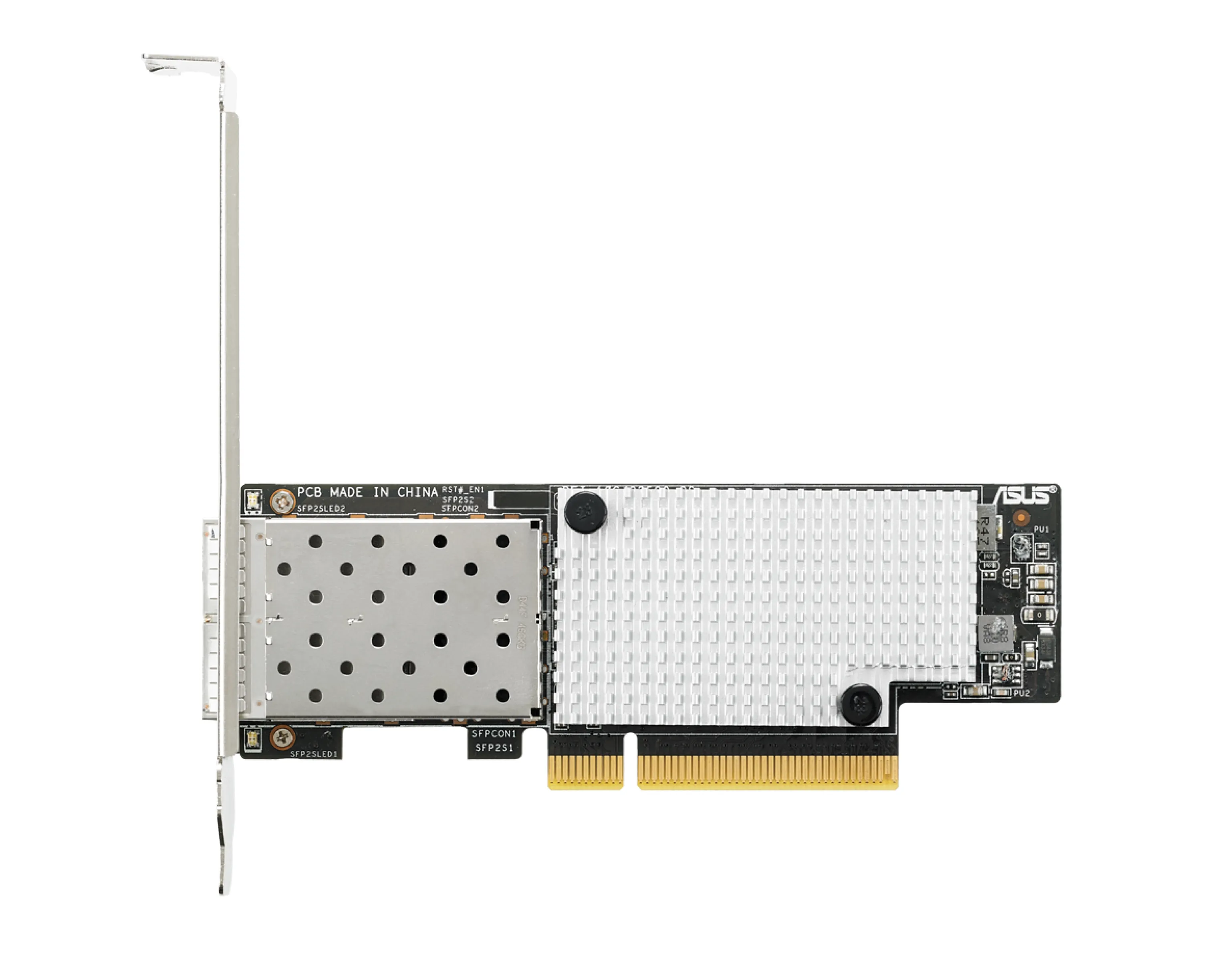 ASUS PEI‑10G/82599‑2S — компактный двойной 10‑гигабитный сетевой адаптер (NIC) на базе контроллера Intel 82599ES. Карта выполнена в уменьшенном форм‑факторе (4,72″ × 1,77″), что позволяет интегрировать её в системы со стеснённым пространством.
