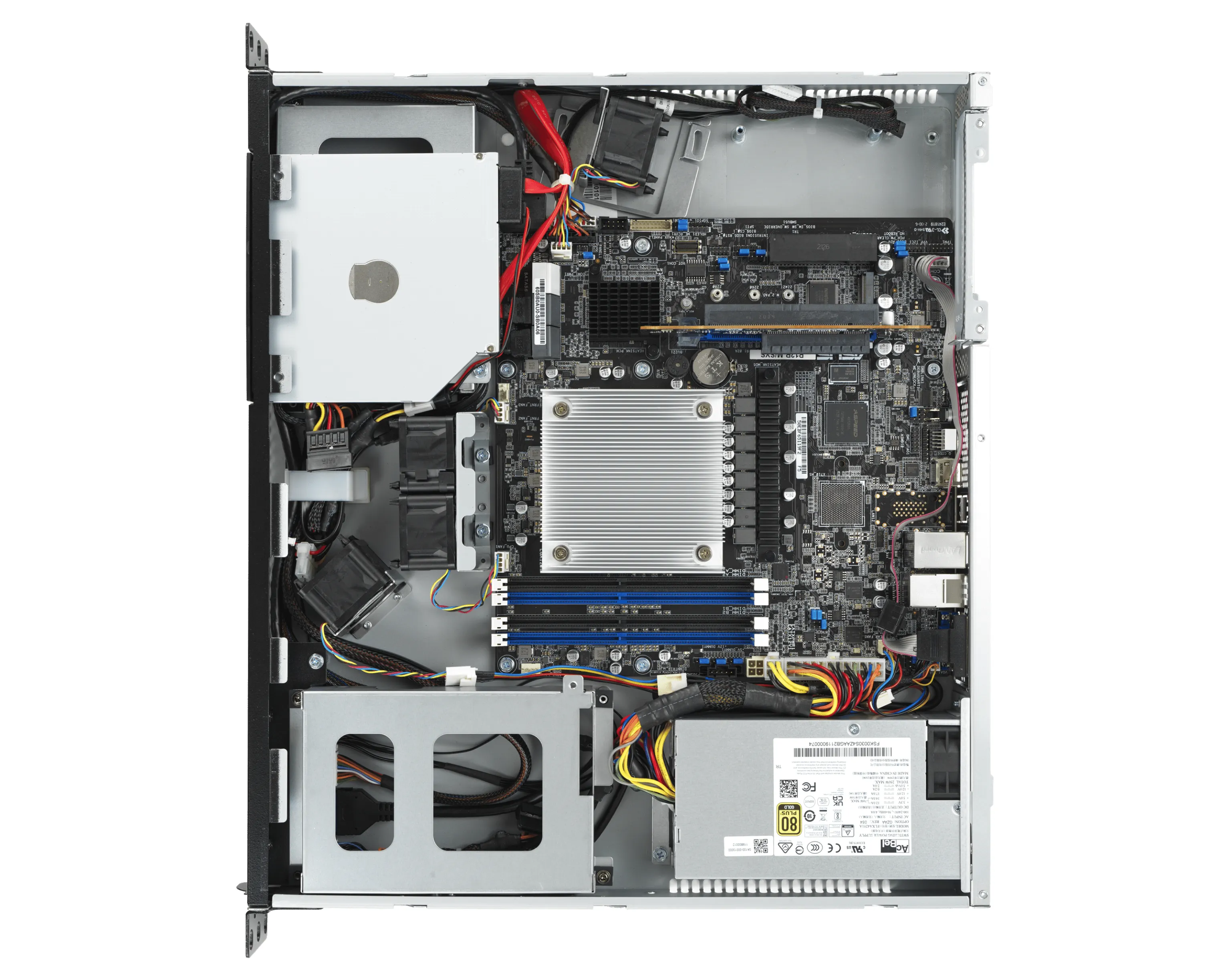 - Два сетевых порта Intel I210‑AT + порт управления (BMC / iKVM)