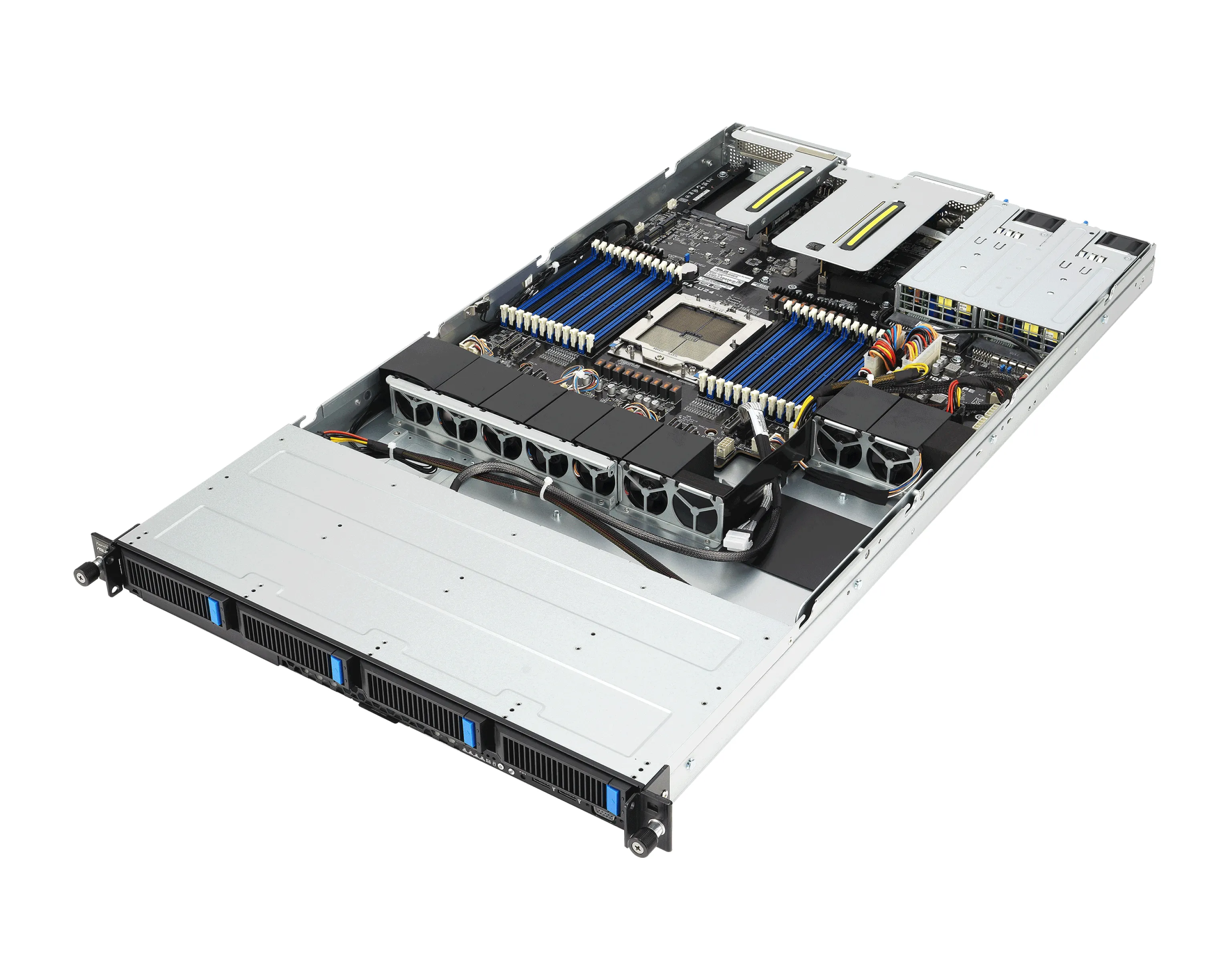 ASUS RS501A‑E12‑RS4 — высокопроизводительный сервер формата 1U, ориентированный на корпоративное и дата-центровое применение. Он построен на платформе AMD EPYC и обеспечивает сбалансированную архитектуру для задач хранения, вычислений и гибкого расширения. Модель “RS4” подразумевает наличие 4 hot-swap NVMe / SATA / SAS дисков спереди, при сохранении возможностей по памяти, расширению и графическим ускорителям.
