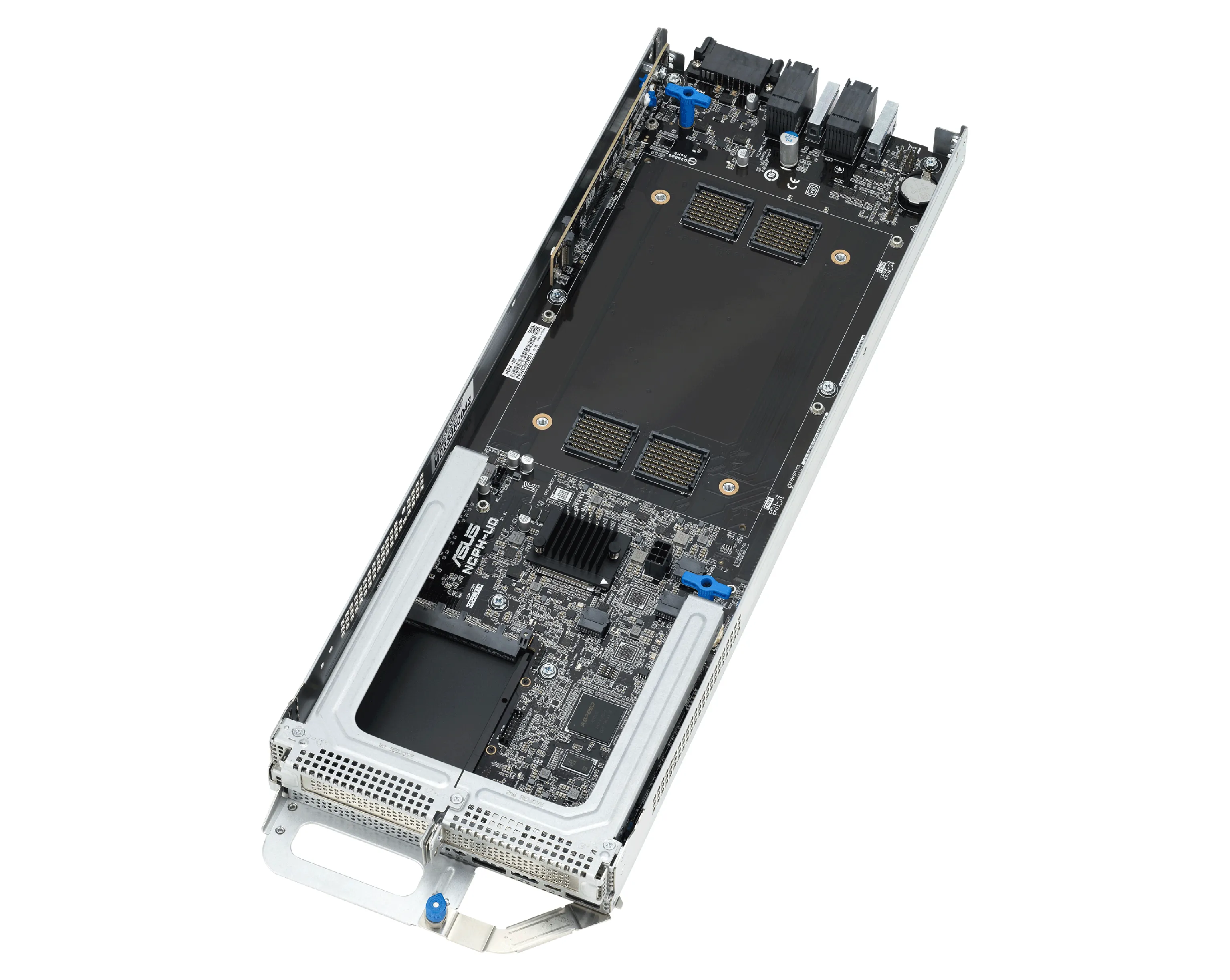 ASUS RS720QN‑E11‑RS24U — это сервер формата 2U4N, спроектированный для задач искусственного интеллекта (AI), высокопроизводительных вычислений (HPC) и инфраструктур будущего. Он использует NVIDIA Grace CPU Superchip с поддержкой NVLink C2C для сверхвысокой пропускной способности связи между узлами. Сервер поддерживает как воздушное, так и прямое жидкостное охлаждение, оснащён встроенным управлением и рассчитан на сложные нагрузки.