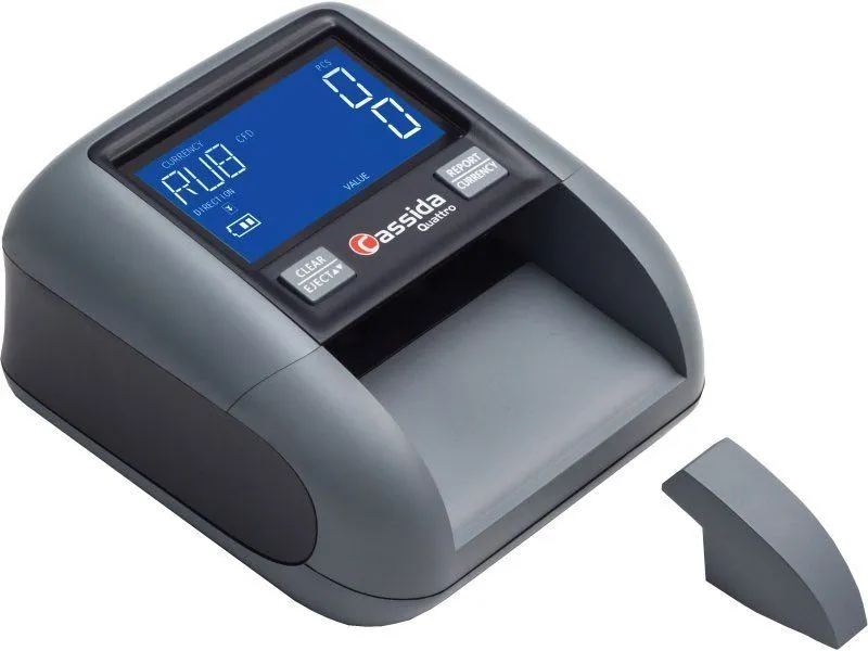 Cassida Quattro S - автоматический, компактный и легкий детектор купюр, идеально подходящий для небольших магазинов, пунктов питания и АЗС. Детектор оснащен 6 различными уровнями детекции, что гарантирует точность и надежность проверки.