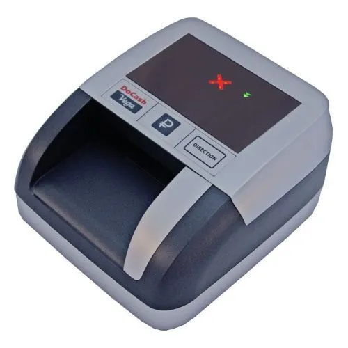 DoCash Vega - Автоматический детектор рублевых купюр, значительно упрощающий процесс проверки на подлинность банкнот любого номинала. Все проверки происходят автоматически, поэтому любой, даже не опытный и не знающий всех тонкостей человек может пользоваться инструментом.