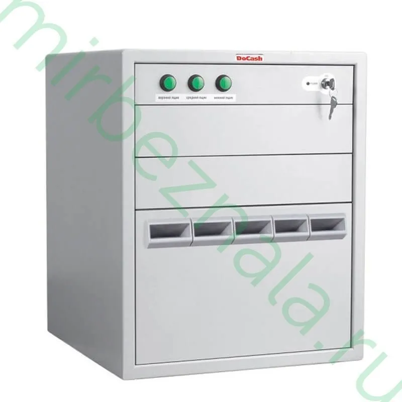 Модель темпокассы от производителя DoCash предназначена для обеспечения повышенной безопасности в тех сферах, где ведется работа с большими объемами наличности. Это депозитный сейф, в который купюры помещаются через специальные отверстия, что исключает необходимость открытия самого ящика. Доступ к наличности открывается только после того, как происходит активация в заданное программой время. Благодаря такому техническому решению значительно повышается уровень безопасности работы кассиров. При ограблении открыть темпокассу сразу же просто невозможно. Кроме того, устройство можно подключить к системе сигнализации или к тревожной кнопке.