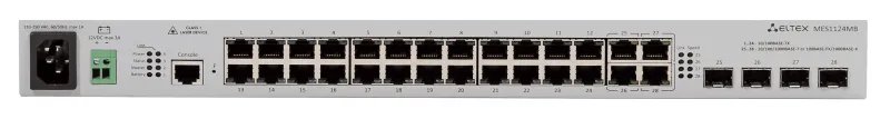 Промышленный управляемый коммутатор уровня L2 с двойным питанием (220V AC/12V DC), 24 портами Fast Ethernet и 4 гигабитными комбо-портами SFP/RJ45. Предназначен для критически важных сетевых инфраструктур, требующих повышенной отказоустойчивости.