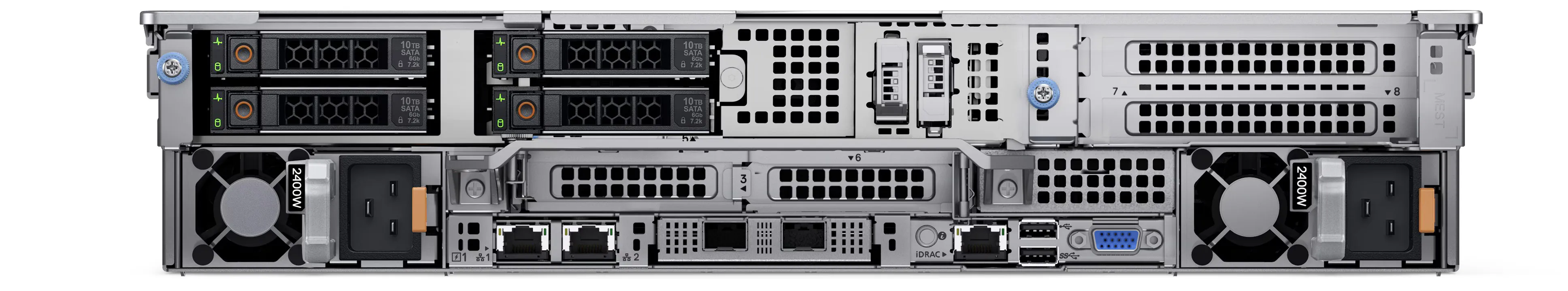 - Система хранения 2 × 960 GB SSD NVMe (операционная система), 4 × 2.4 TB SAS 10k (медиа-файлы и логи)