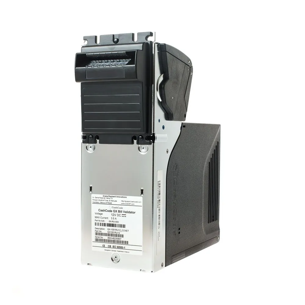 Использование популярного купюроприемника модели CashCode GX с успехом оправдало себя в различном платежном оборудовании самообслуживания. Необременительность монтажа, эффективность функционирования, удобство обслуживания - вот список немаловажных преимуществ, имеющихся у данного устройства. Прибор способен осуществлять не только прием банкнот, временное хранение наличности, но и проверку купюр на подлинность. Купюроприемник работает с разногабаритными купюрами, благодаря наличию BackLoad-системы, позволяющей автоматически настраивать ширину купюроприемного канала и обладающей саморегулирующимися направляющими. Реализуемая модель уже имеет в комплекте денежную кассету, рассчитанную по максимуму на 1500 банкнот.