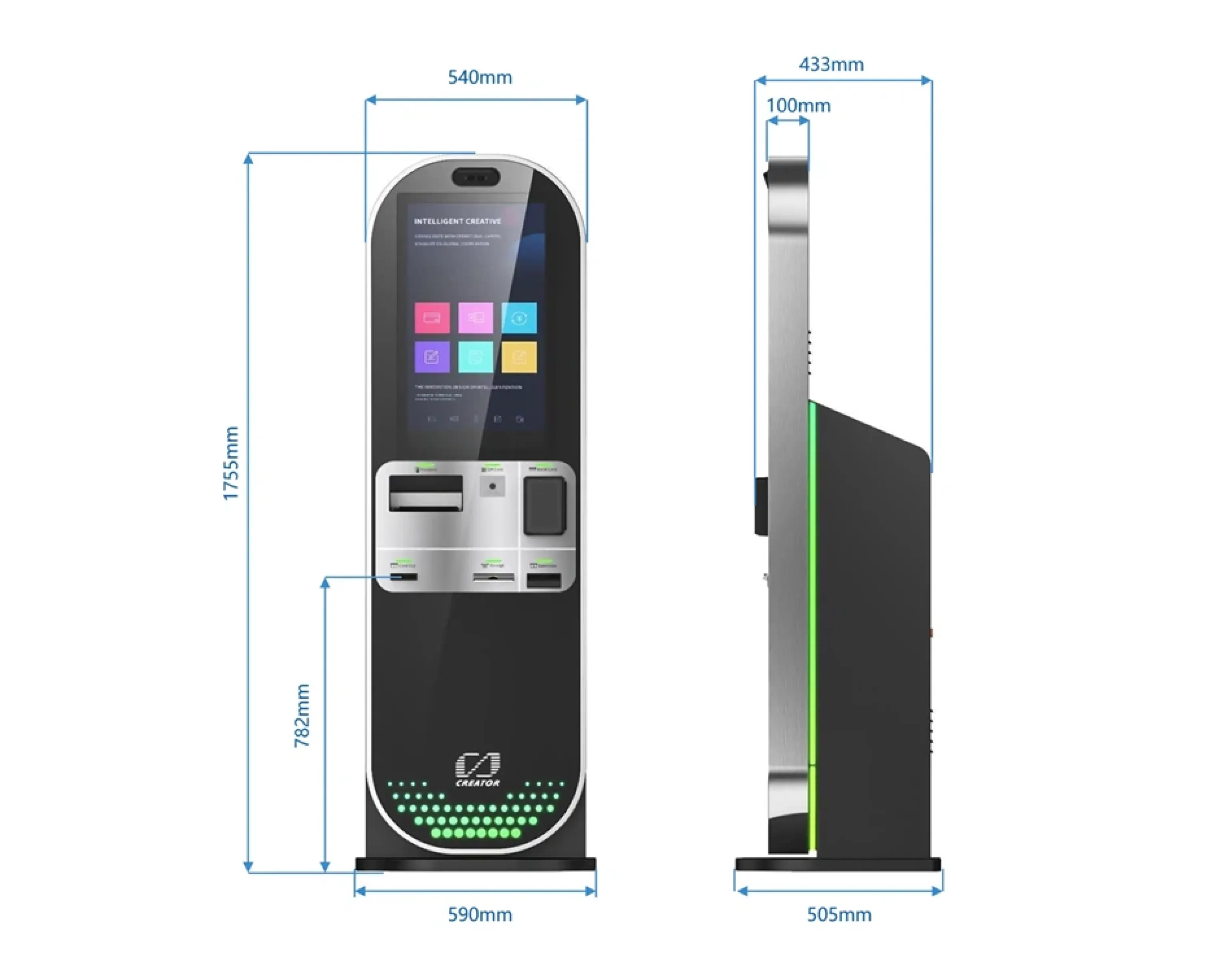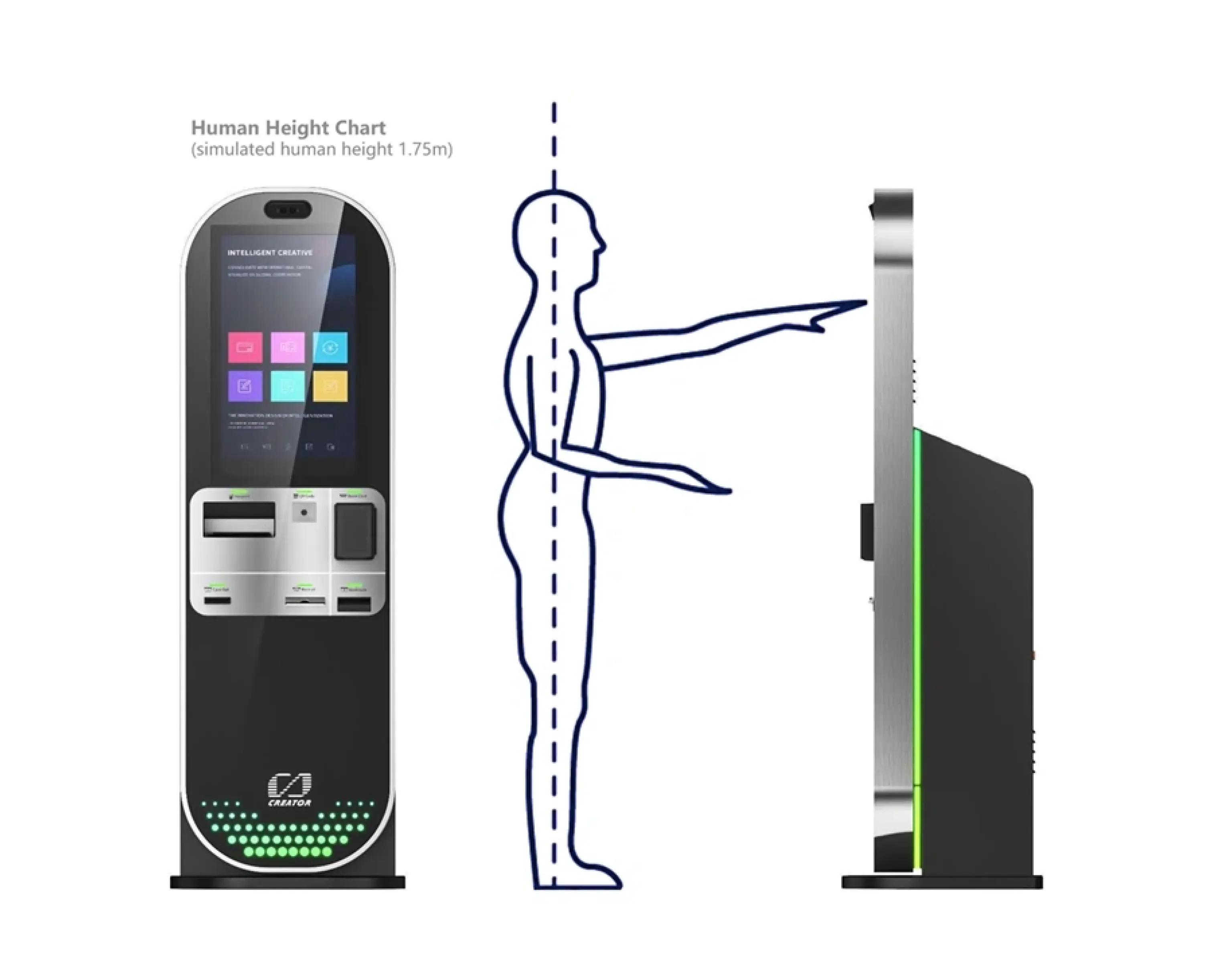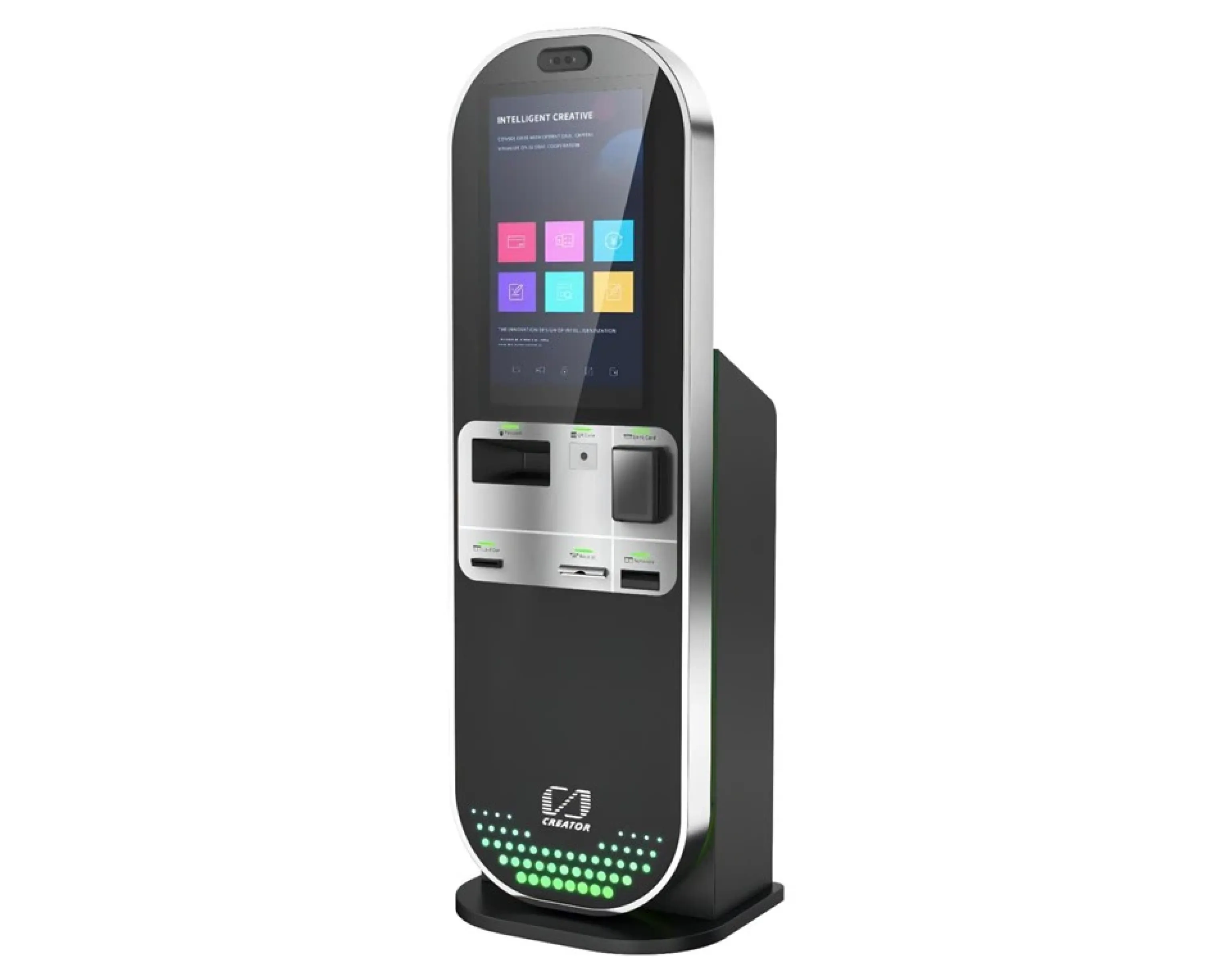 Терминал самообслуживания T-301-H Series 2 предназначен для автоматизации регистрации в отелях и выдачи телеком-карт. Это высокотехнологичное устройство с множеством функций для удобства пользователей, включая распознавание лиц и возможность оплаты наличными.