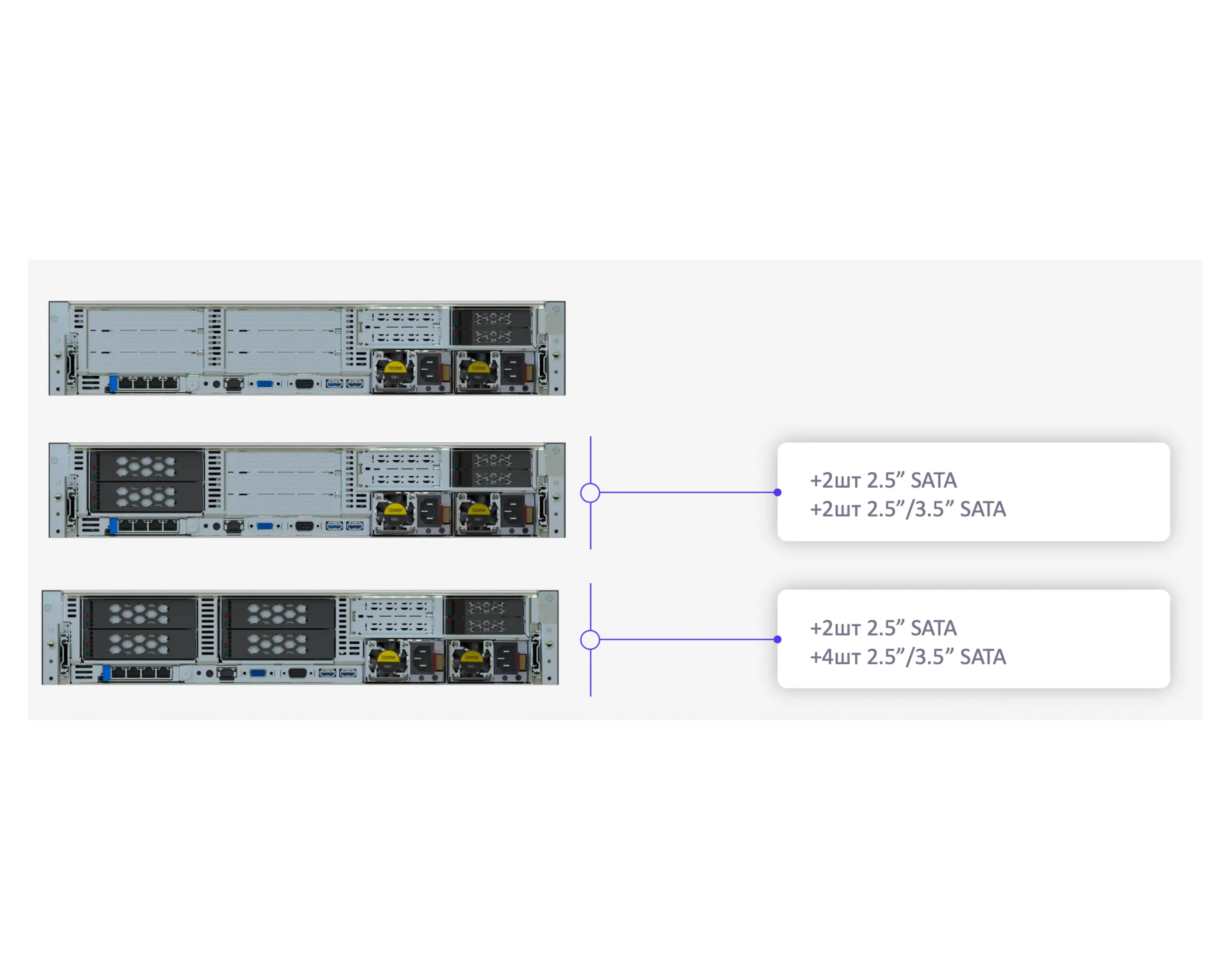 - до 12 × SATA HDD/SSD 3.5” / 2.5” с поддержкой горячей замены