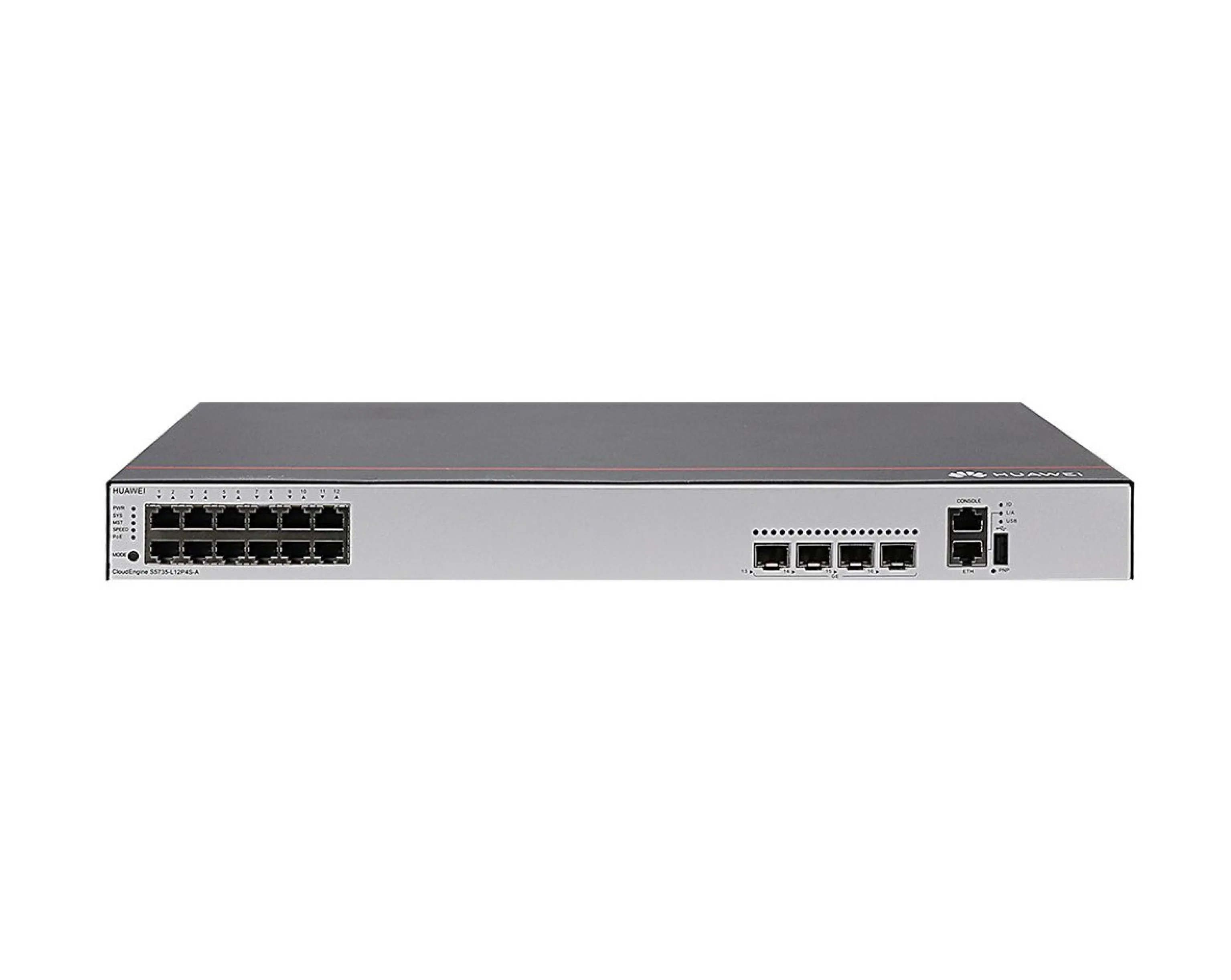 Huawei CloudEngine S5735S-L12T4S-A — это управляемый гигабитный коммутатор уровня L2/L3, предназначенный для построения высокопроизводительных и масштабируемых сетей в корпоративных и кампусных средах.