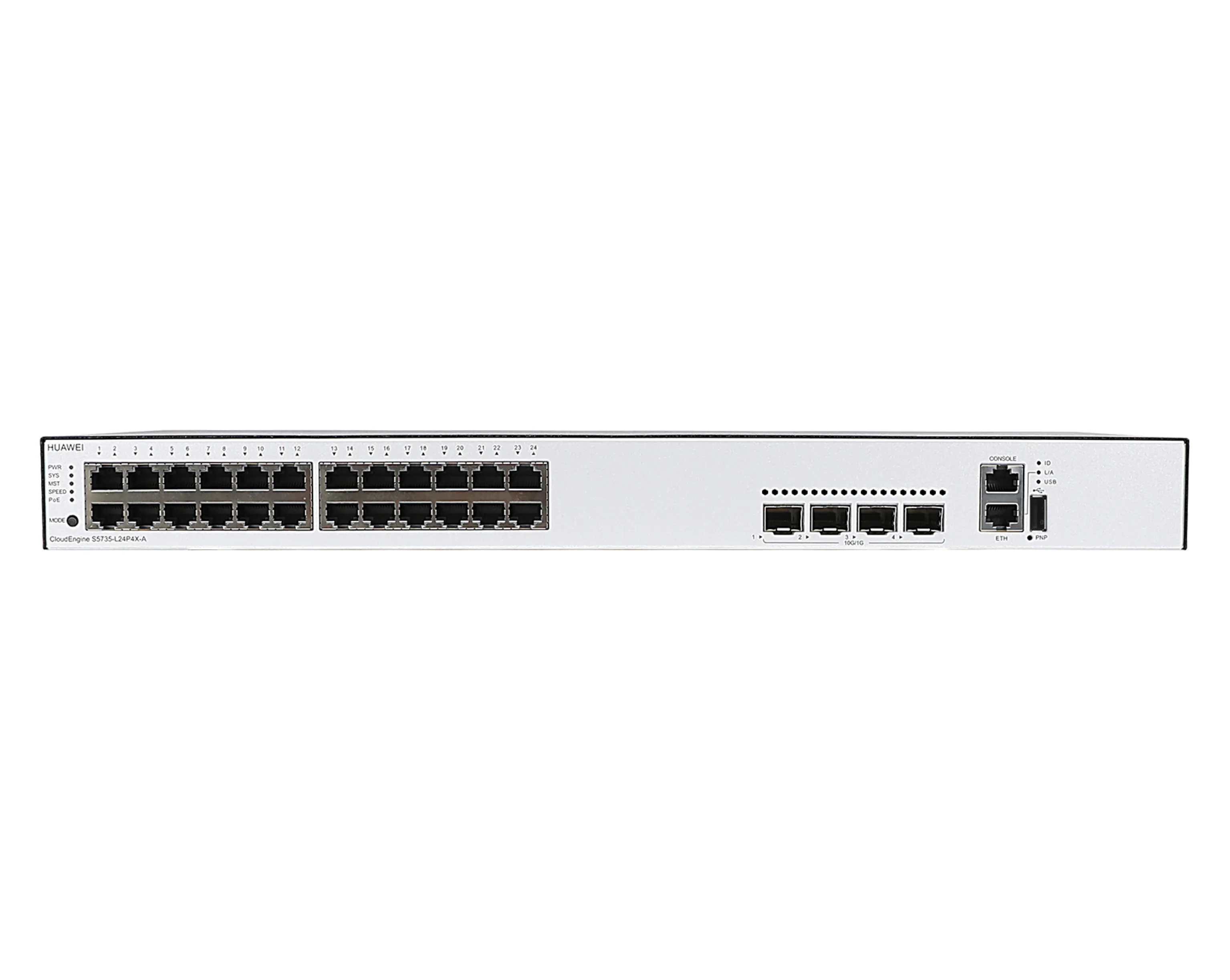Huawei CloudEngine S5735S-L24P4X-A — это управляемый гигабитный коммутатор уровня L3, предназначенный для построения высокопроизводительных и масштабируемых сетей в корпоративных и кампусных средах.