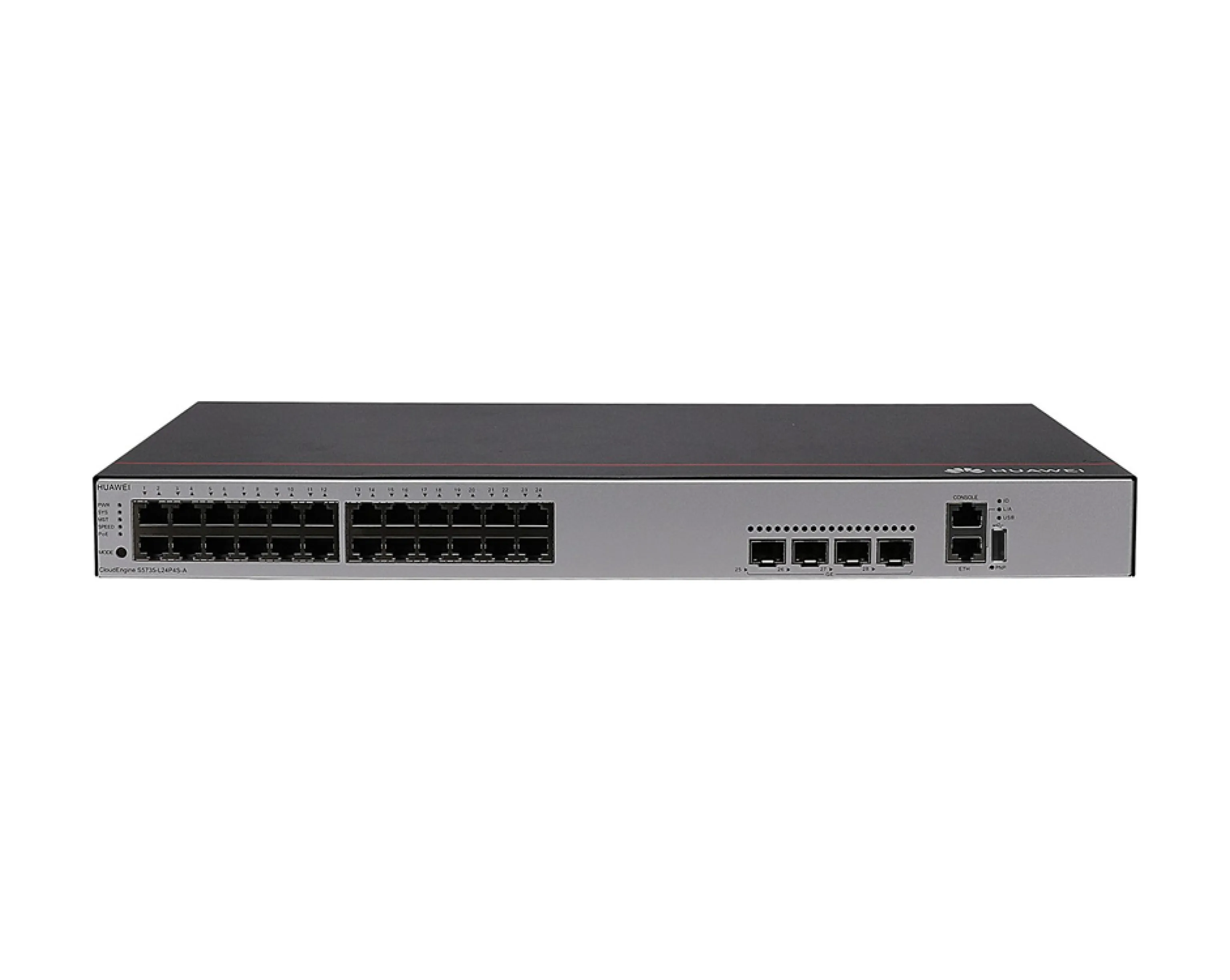 Huawei CloudEngine S5735S-L24T4X-A — это управляемый гигабитный коммутатор уровня L3, предназначенный для построения высокопроизводительных и масштабируемых сетей в корпоративных и кампусных средах.