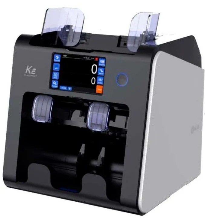 Kisan K2 – надежный, современный и производительный счетчик-сортировщик денежных единиц. Это простое в управлении, универсальное устройство, которое не занимает много места и не потребует от пользователя специальных знаний для свободного управления. Все операции можно осуществлять с помощью удобного сенсорного мини экрана. Для выбора необходимого режима достаточно просто нажать соответствующую кнопку на дисплее.
