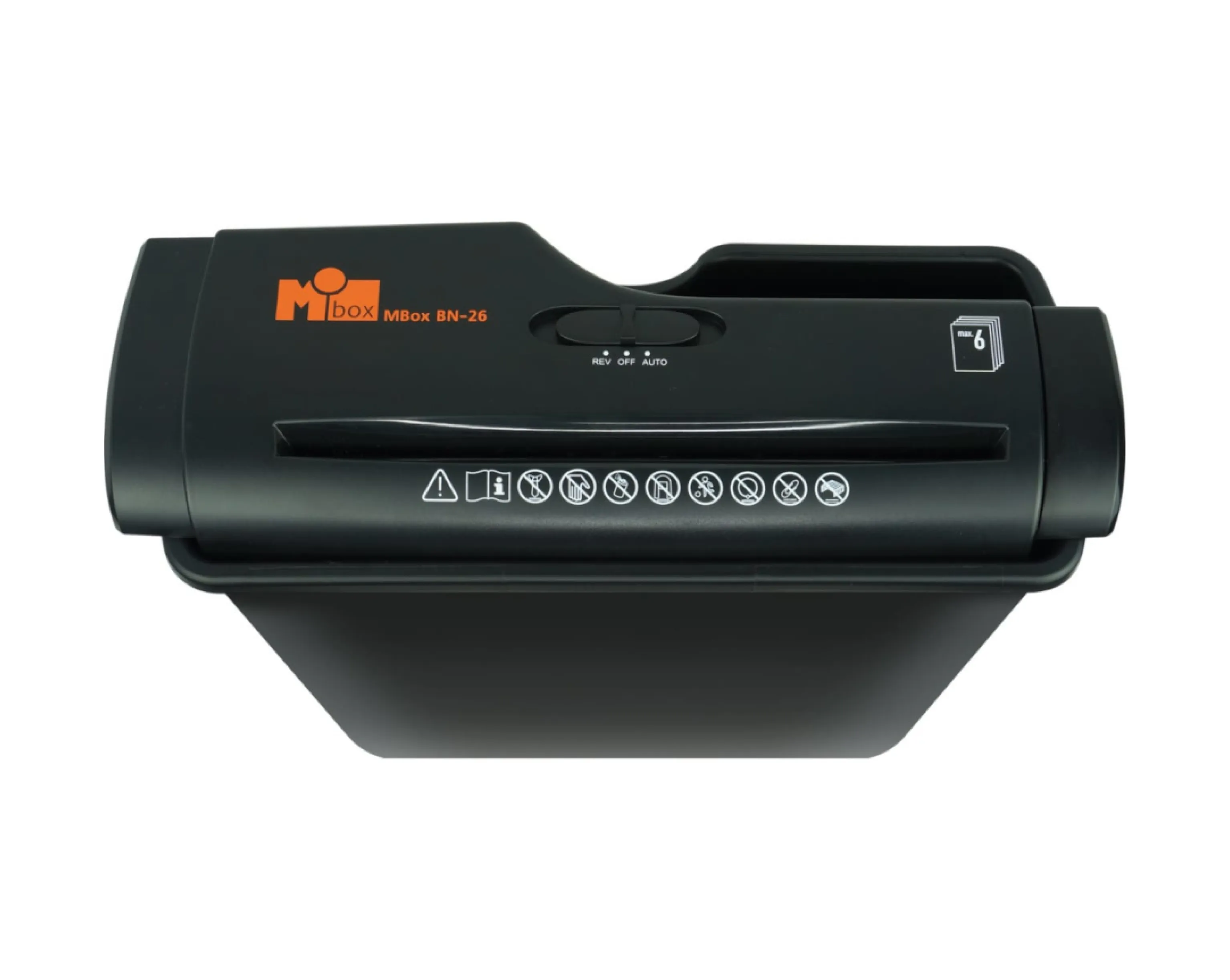MBox BN-26 — это персональный уничтожитель документов, идеально подходящий для домашнего использования или небольших офисов. Благодаря продольной резке и уровню секретности P-2, он обеспечивает базовую защиту конфиденциальной информации. Компактные размеры и легкий вес делают его удобным в эксплуатации и хранении.