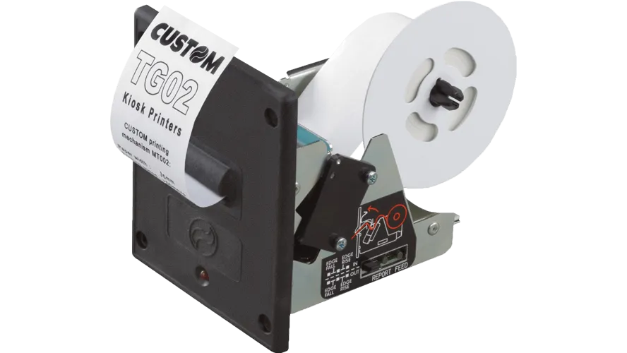 TG-02 от Custom – это простой в применении встраиваемый термопринтер, который удобно использовать там, где клиентский поток небольшой. Устройство можно назвать миниатюрным и легковесным, поэтому его монтаж не доставит больших хлопот.