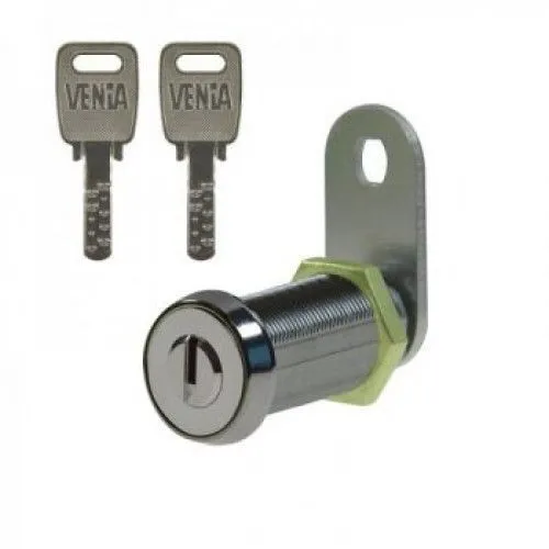 Замок марки VENIA, длиной в 23 мм, с успехом используется для запирания разнообразного терминального оборудования, характеризуясь надежностью и удобством эксплуатации. Применение 14-пиновой системы (плоская боковая поверхность с 10-ю пинами и по паре боковых пинов с каждой стороны) позволяет обезопасить корпуса терминалов от несанкционированных взломов. С данной моделью замка используются плоские ключи.