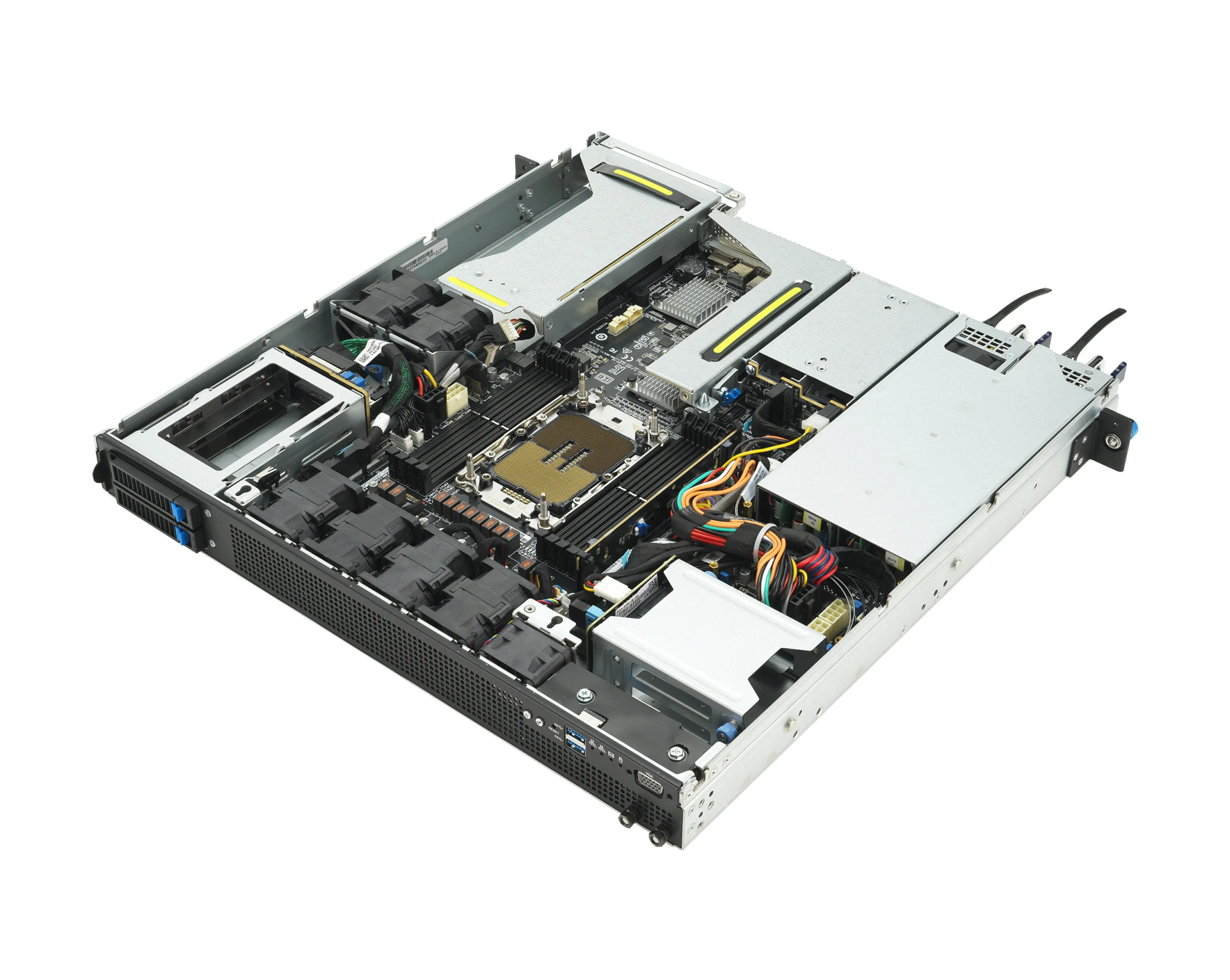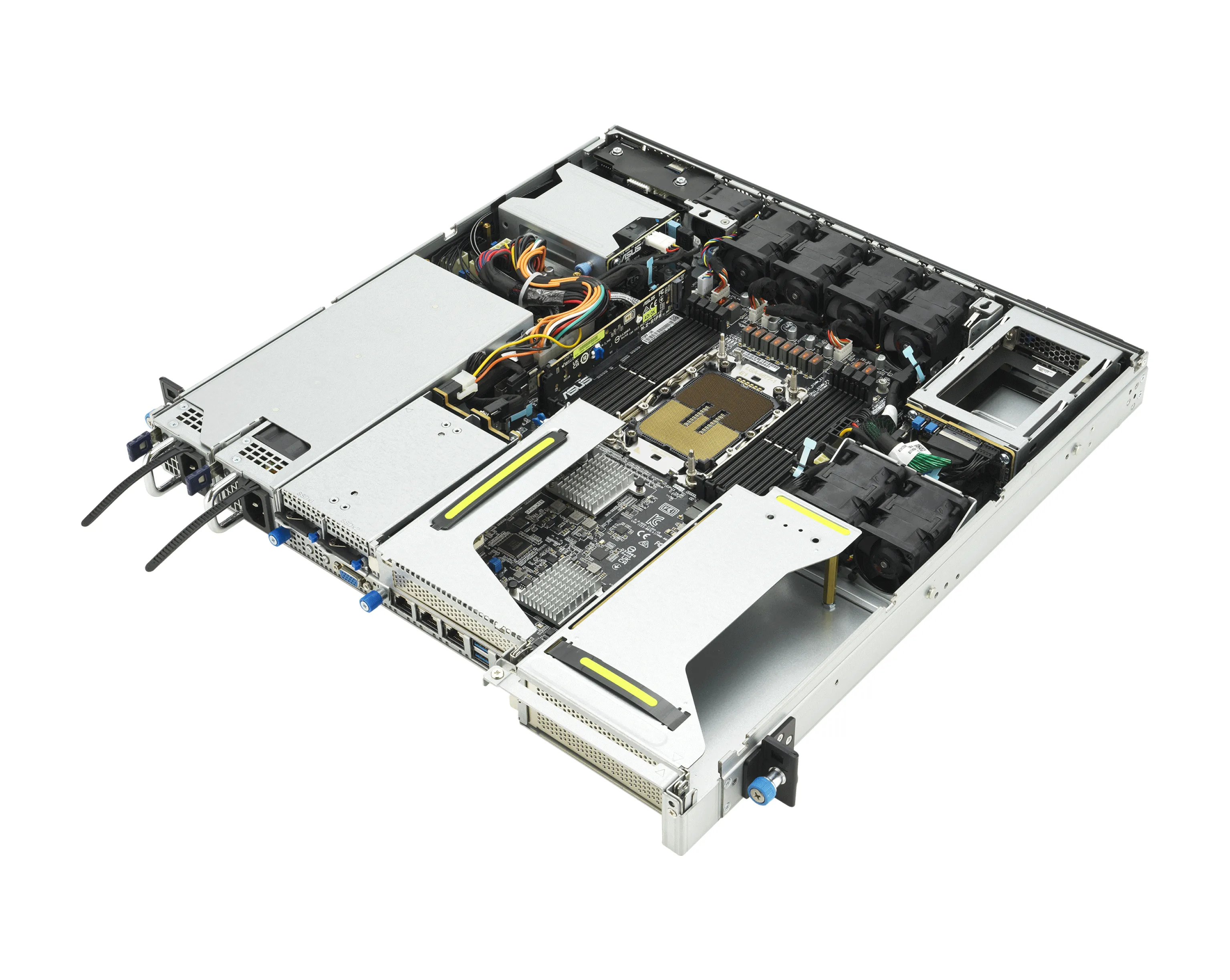 ASUS EG500‑E11‑RS4‑F — это 1U сервер с одним сокетом, предназначенный для эксплуатации в условиях с ограниченным пространством (edge / периферия). Дизайн с короткой глубиной шасси и тыловым доступом к I/O облегчает установку в узких стойках. Сервер поддерживает установку ускорителей и расширений (до 3 карт FHHL), использует современные интерфейсы и предлагает гибкие варианты хранения и питания.