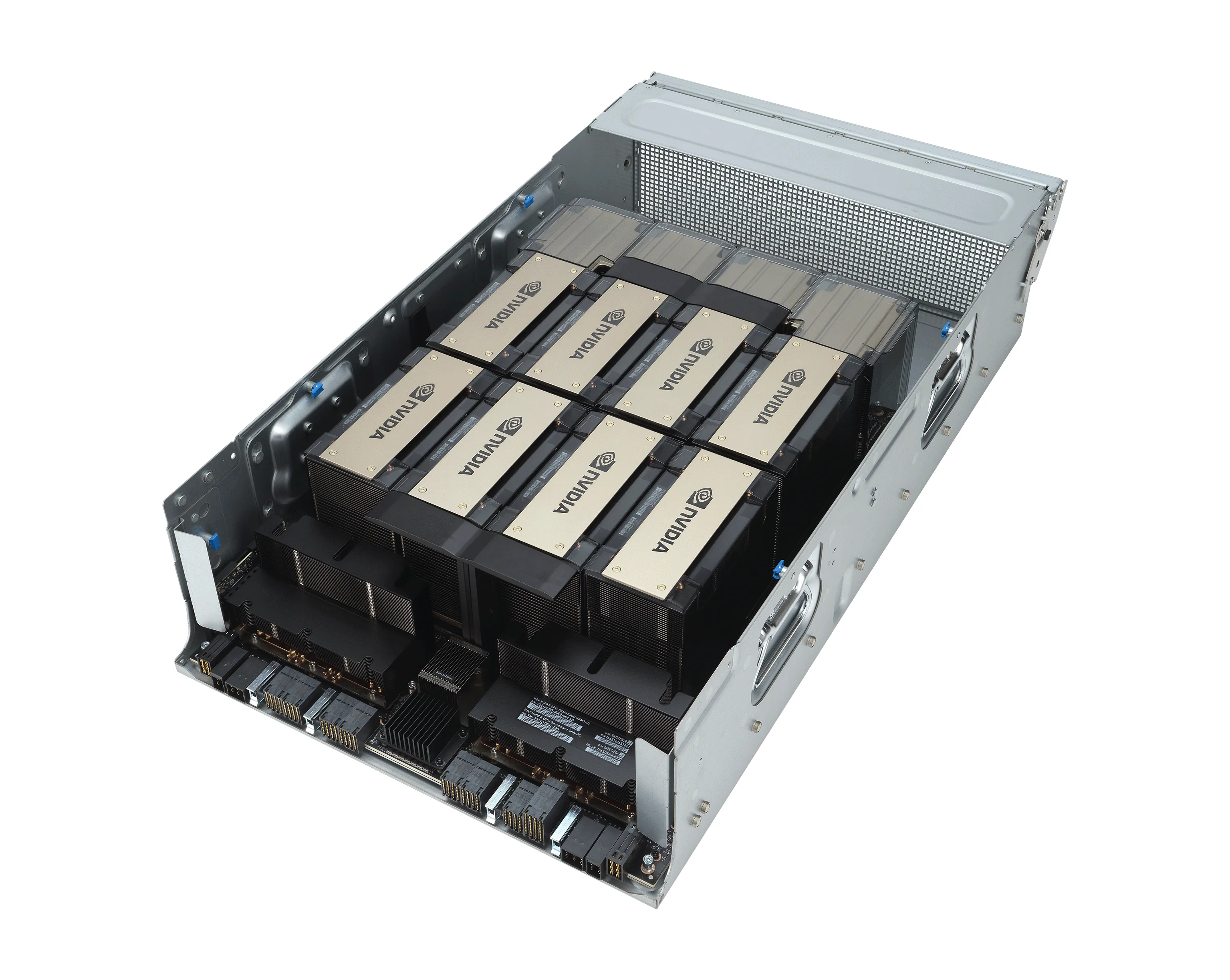 Мощный сервер для задач ИИ и вычислений с высокой плотностью: в корпусе 7U размещено до 8 GPU в связке с двумя процессорами Intel Xeon 5-го поколения. Система поддерживает прямую GPU‑взаимосвязь через NVLink, архитектуру «один GPU — одна сетевая карта», а также модульный дизайн, оптимизированный для охлаждения и эффективной сборки. Сервер готов к работе с H100 / H200 GPU и рассчитан на высокую плотность вычислительных нагрузок.