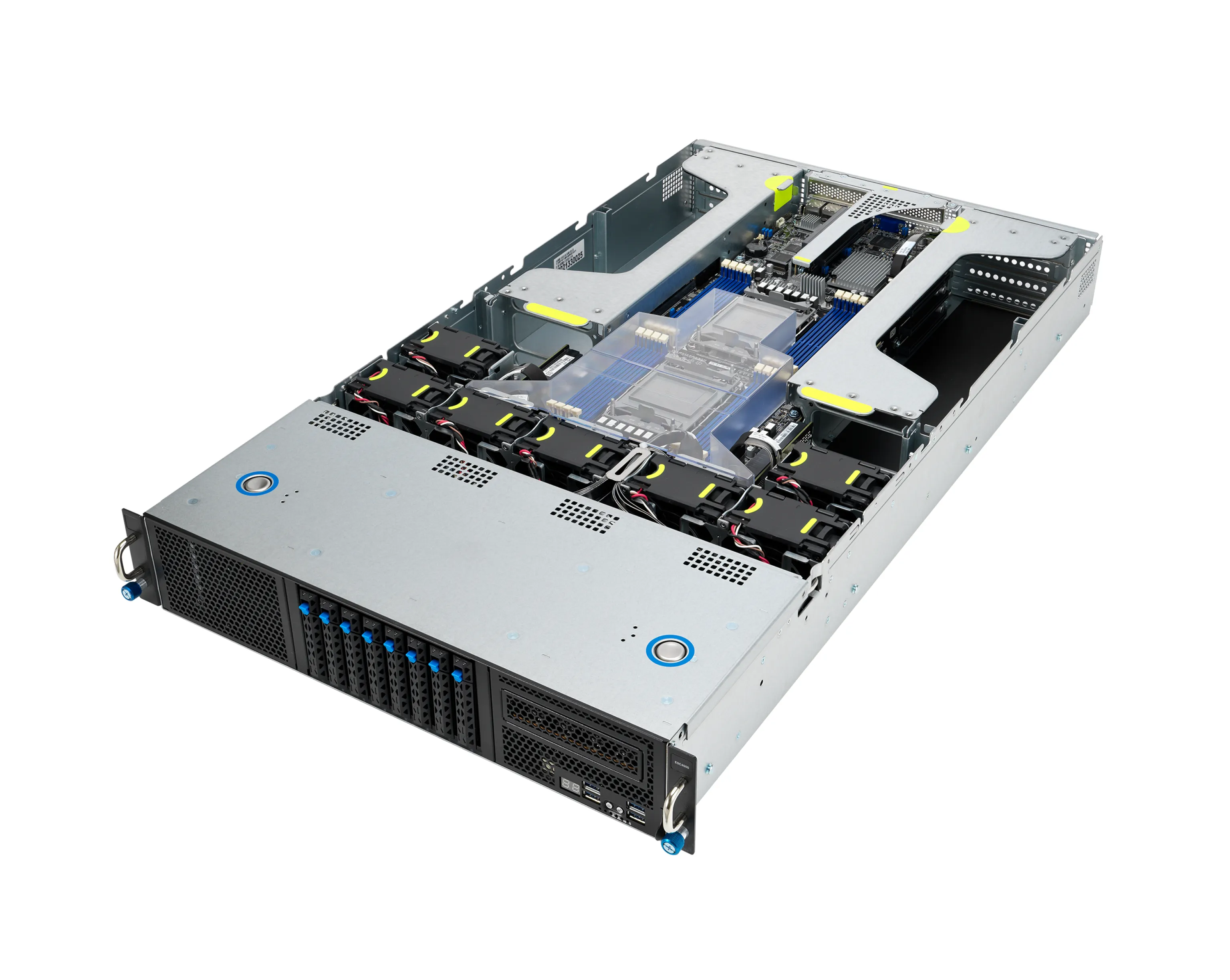 ASUS ESC4000‑E10S — это стоечный сервер формата 2U с поддержкой двух процессоров Intel Xeon Scalable 3-го поколения, ориентированный на использование GPU и ускорителей для задач машинного обучения, аналитики, вычислений и визуализации. Сервер поддерживает до четырёх графических карт двойного слота, расширенное хранилище NVMe / SATA / SAS, множество слотов PCIe 4.0, а также продвинутые функции управления и безопасности.