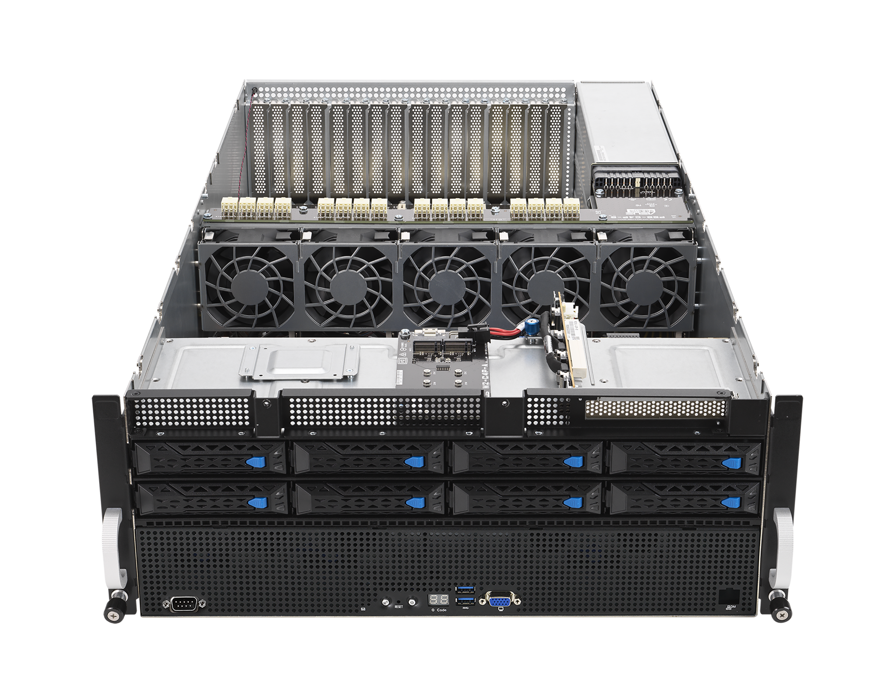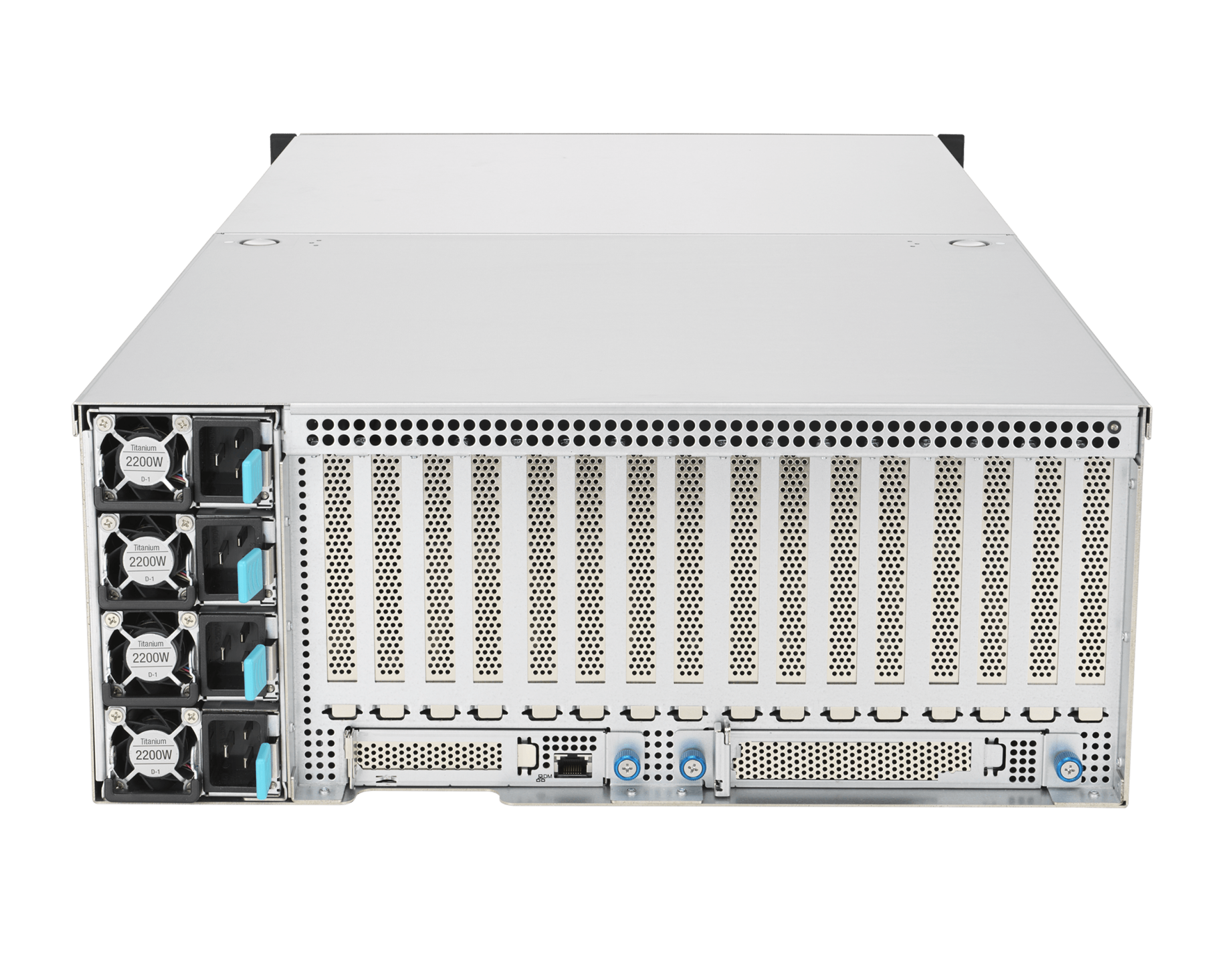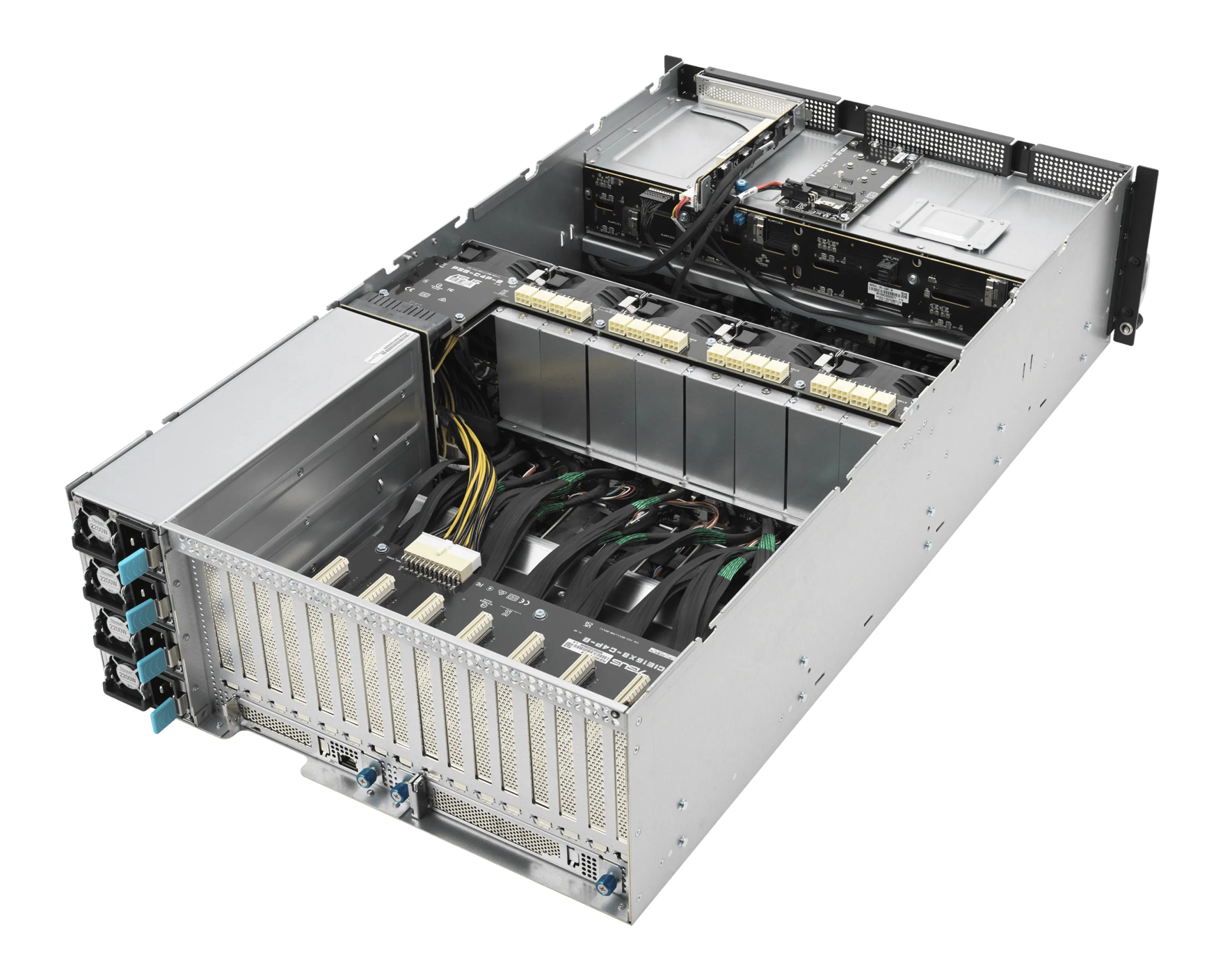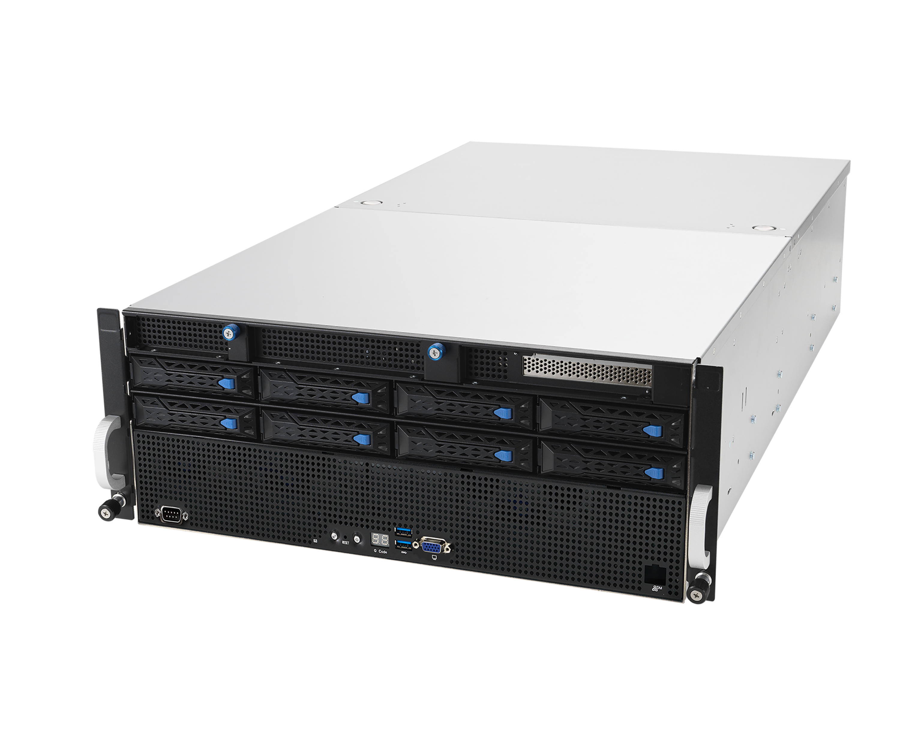 ASUS ESC8000A‑E11 — это сервер формата 4U с двумя процессорными сокетами, спроектированный для задач искусственного интеллекта, высокопроизводительных вычислений и масштабируемых GPU‑инфраструктур. Поддерживает до восьми двойных слотовых GPU (active / passive), имеет гибкую архитектуру расширения, резервируемое питание и продвинутую систему управления.