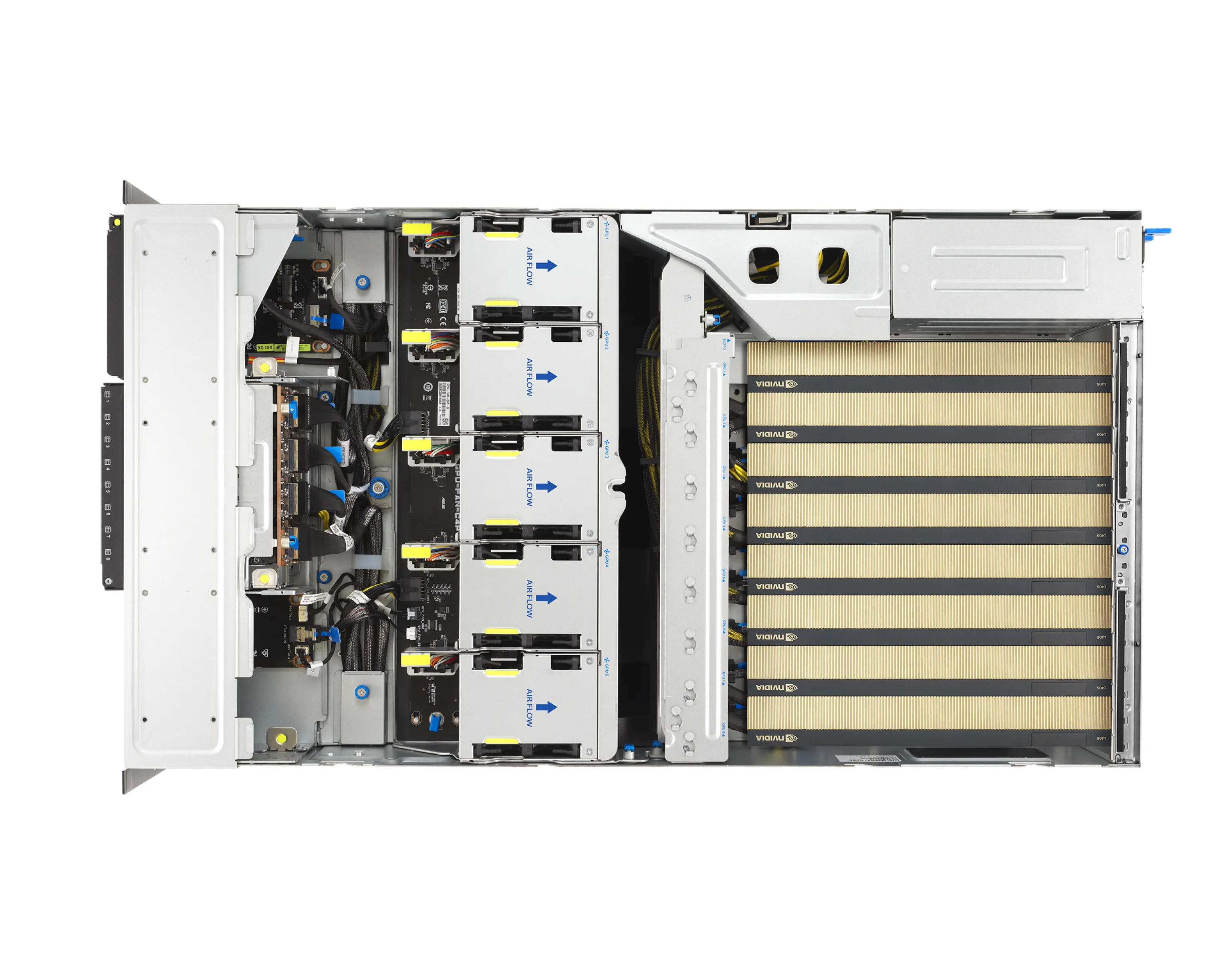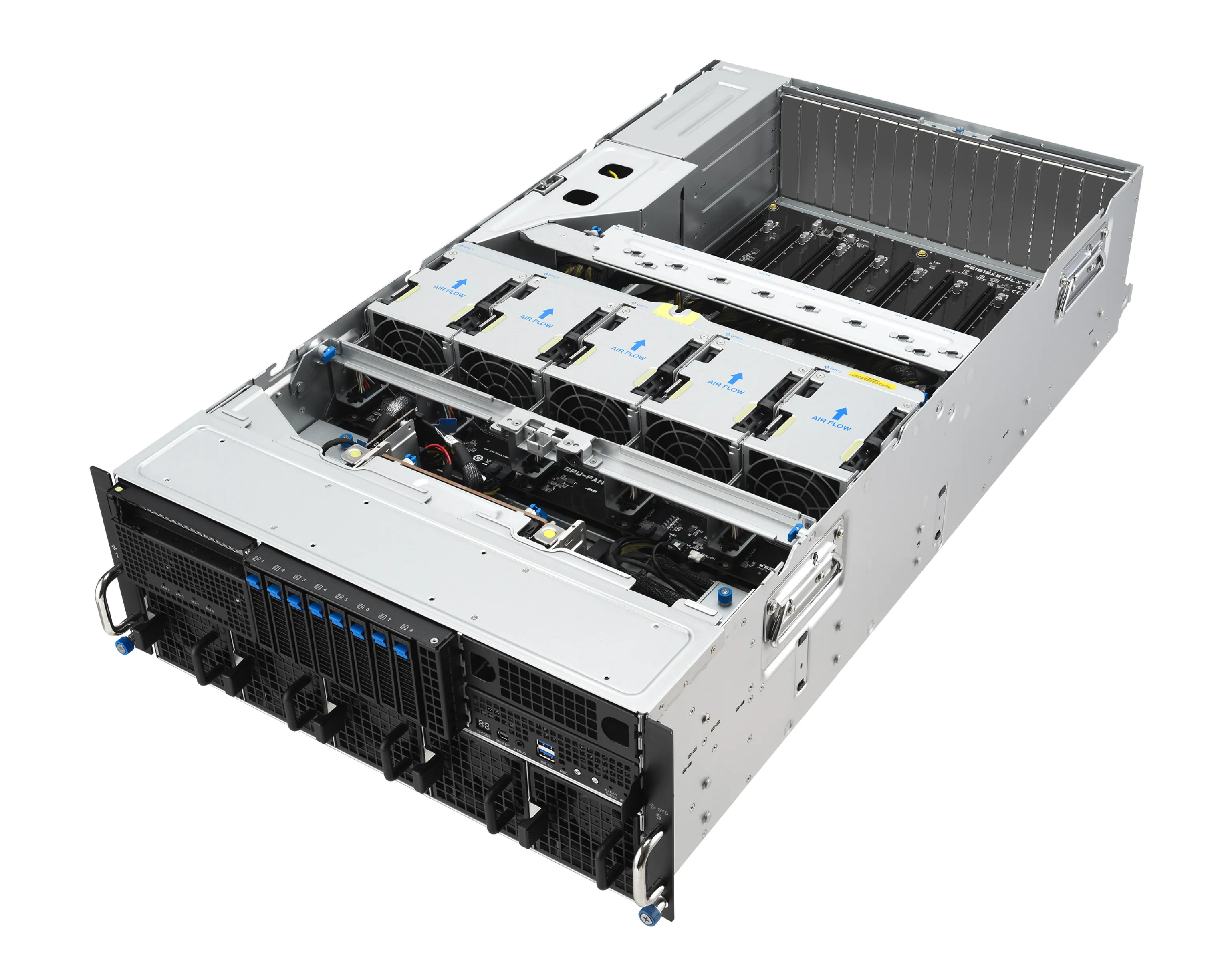 - Графика: Возможность установки до 8 двухслотовых GPU, таких как NVIDIA H200 или RTX PRO™ 6000 Blackwell Server Edition, с поддержкой до 600 Вт на GPU.