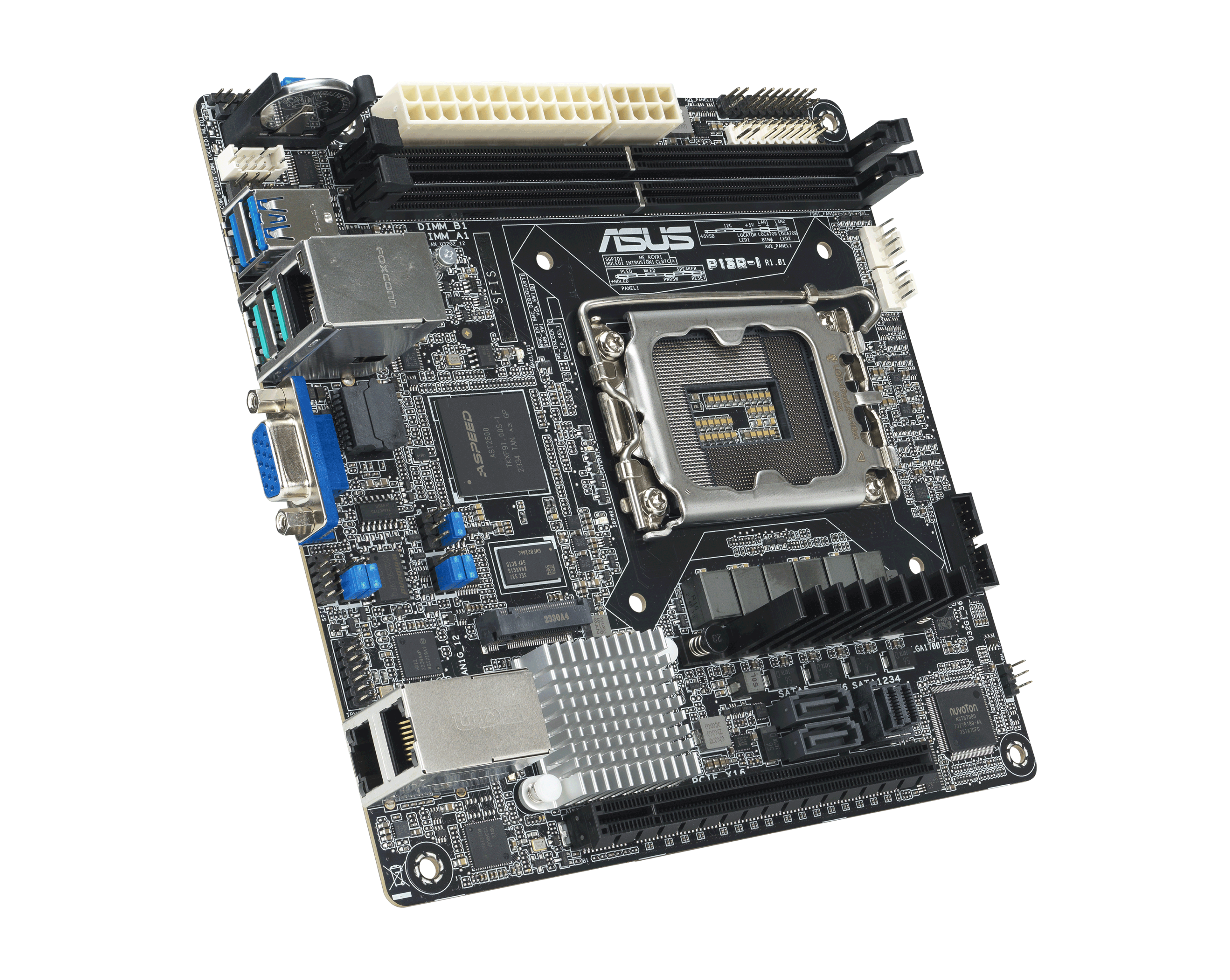 ASUS P13R‑I — это миниатюрная серверная плата формата Mini‑ITX, предназначенная для использования в компактных серверах, системах хранения, встраиваемых решениях и небольших дата‑центрах. Поддерживает процессоры Intel Xeon E‑2400 / Intel Xeon 6300 на сокете LGA 1700, рассчитана на ECC_память DDR5, имеет встроенный модуль управления ASMB11‑iKVM, а также оснащена современными интерфейсами расширения и хранения.