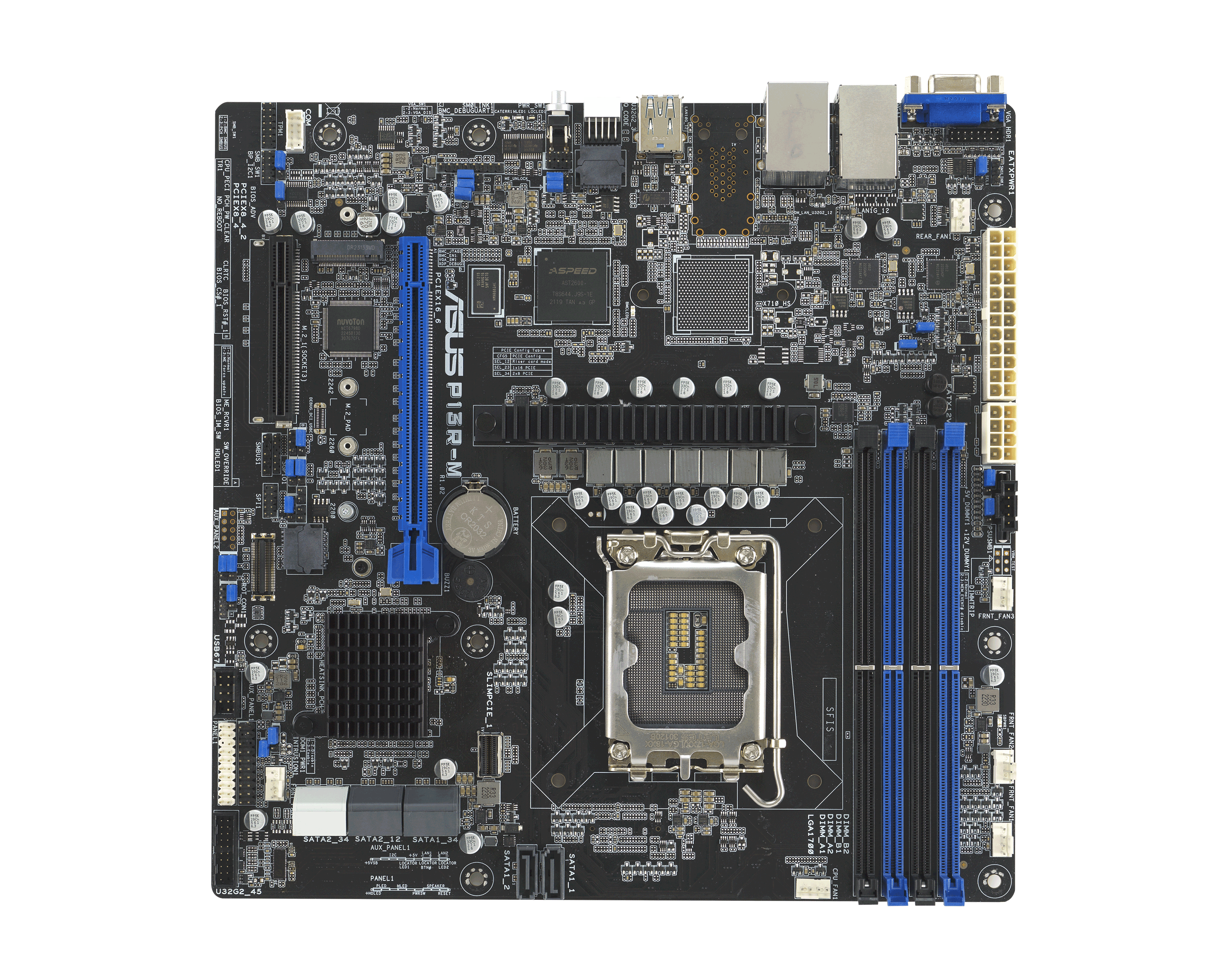 ASUS P13R‑M — это серверная плата компактного формата micro‑ATX, ориентированная на решения начального / среднего уровня. Она поддерживает процессоры Intel Xeon E‑2400 и Xeon 6300 (сокет LGA 1700), предлагает до четырёх модулей памяти DDR5 ECC, слоты расширения PCIe 5.0 / 4.0, встроенный iKVM‑модуль и надёжные функции управления прошивкой (PFR). Плата подходит для серверов общего назначения, небольших стоечных решений или компактных систем хранения.