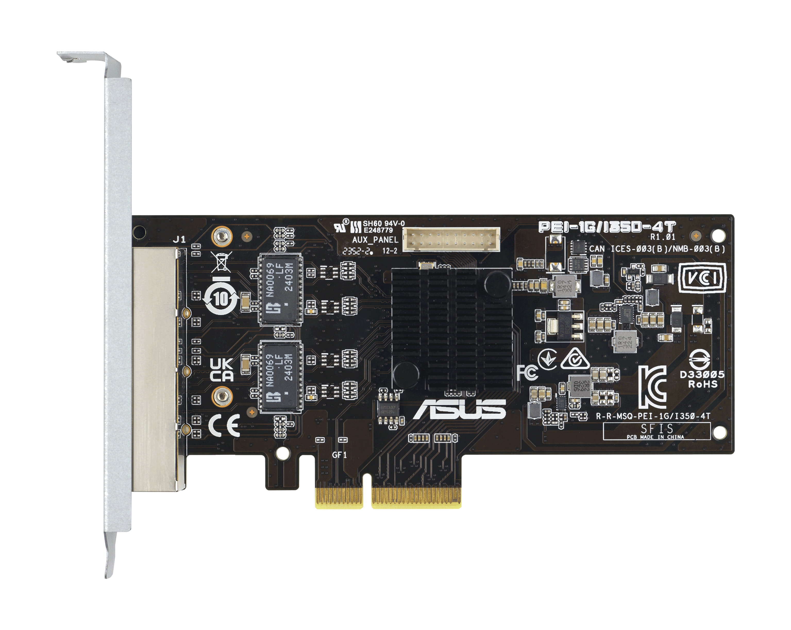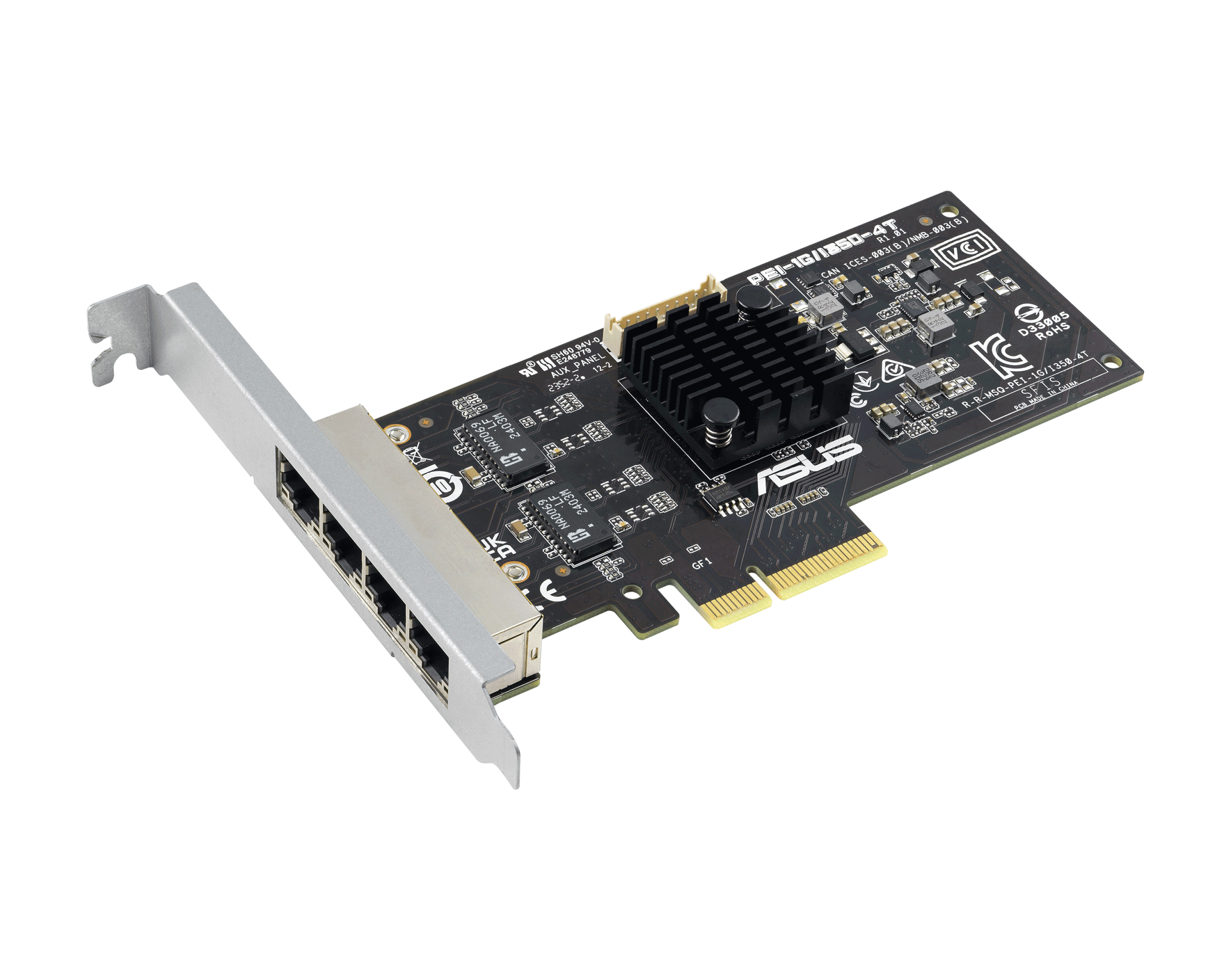 ASUS PEI‑1G/I350‑4T — это серверный мезонин‑адаптер с четырьмя портами 1GBase‑T, предназначенный для установки в шасси и серверные системы с поддержкой OCP. Он обеспечивает высокую гибкость конфигурации сети, виртуализацию, функции ускорения сетевого трафика и совместимость с функциями загрузки и сетевых сценариев.