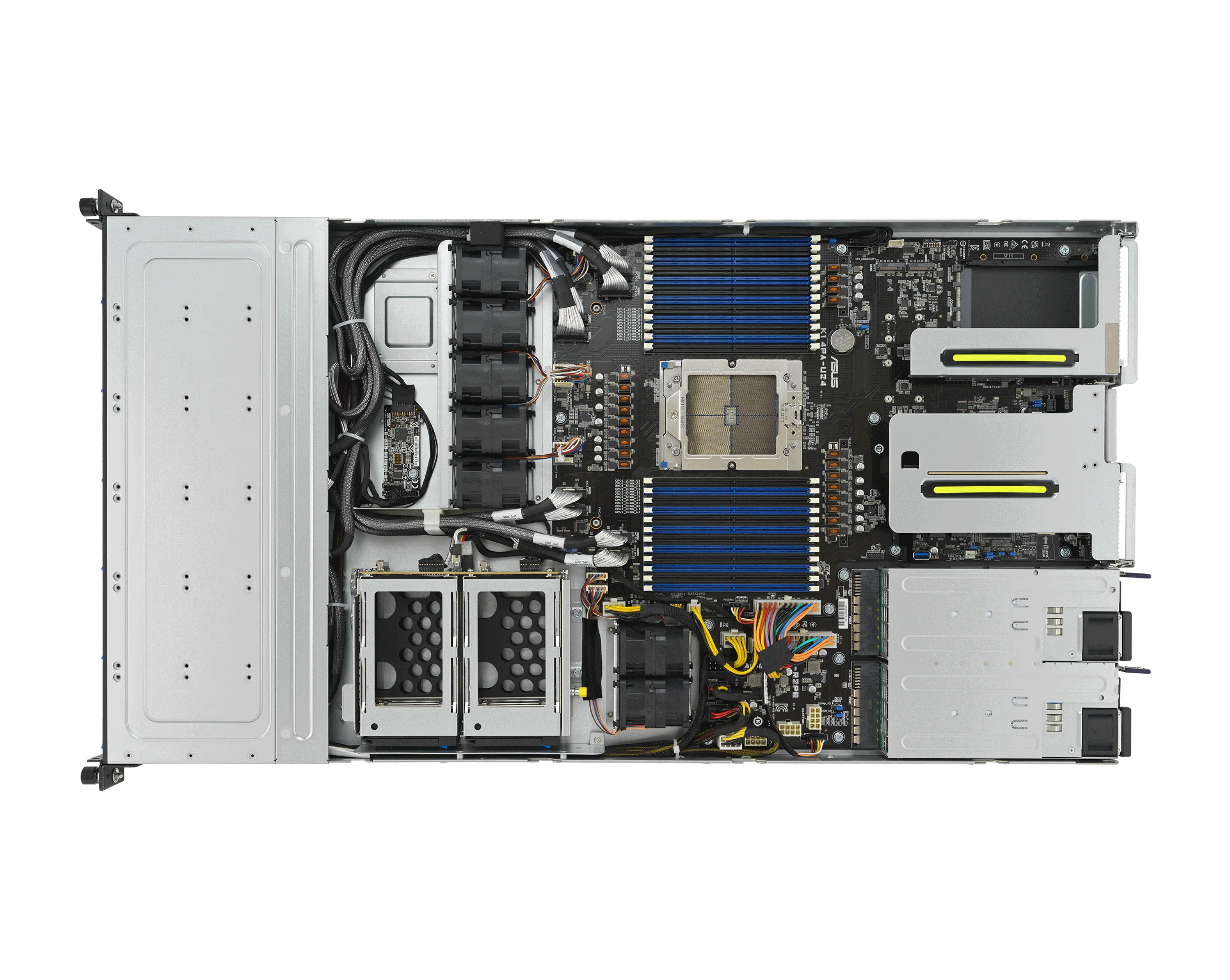 ASUS RS500A‑E12‑RS12U — это стойочный сервер формата 1U с одним процессором AMD EPYC™ 9004, рассчитанный для задач хранения, вычислений и ускорения. Он сочетает компактность с высокой плотностью: поддержка до 24 модулей памяти DDR5, до 12 фронтальных NVMe / SATA / SAS накопителей, дополнительные слоты расширения (PCIe 5.0 / OCP 3.0), два слота M.2 и возможность установки двух однослотовых GPU.