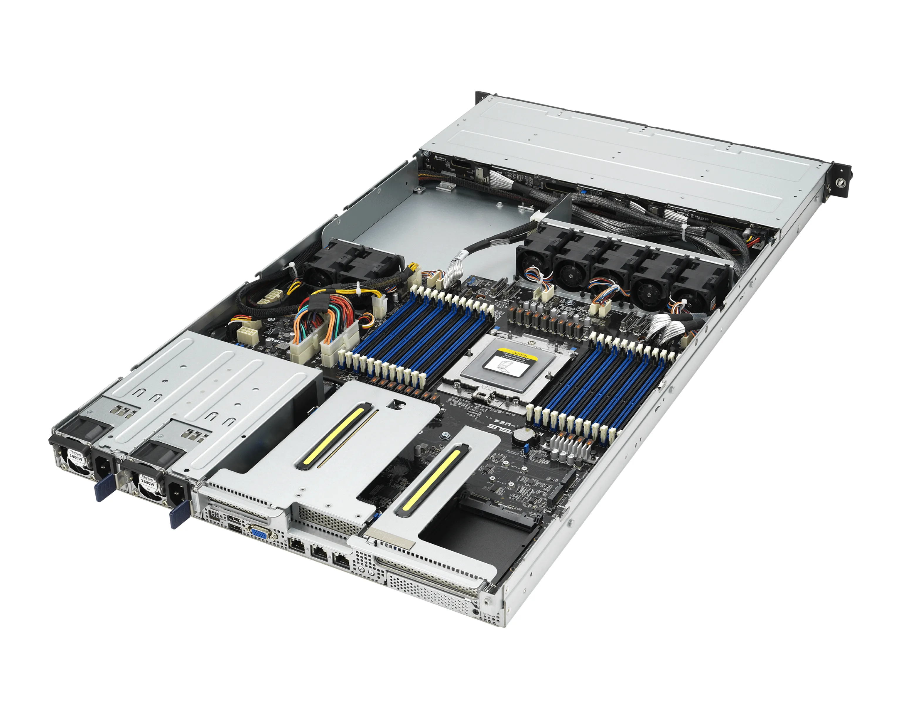 ASUS RS500A‑E12‑RS4U — это стоечный сервер формата 1U с одним процессором, предназначенный для задач хранения, вычислений, виртуализации и ускорения. Он обеспечивает поддержку до 24 слотов памяти DDR5, 4 hot‑swap NVMe / SATA / SAS дисков, расширение через PCIe Gen5 / OCP 3.0, возможность установки до двух однослотовых GPU и резервируемое питание. Это надёжное решение для инфраструктурных сред с ограниченным пространством.