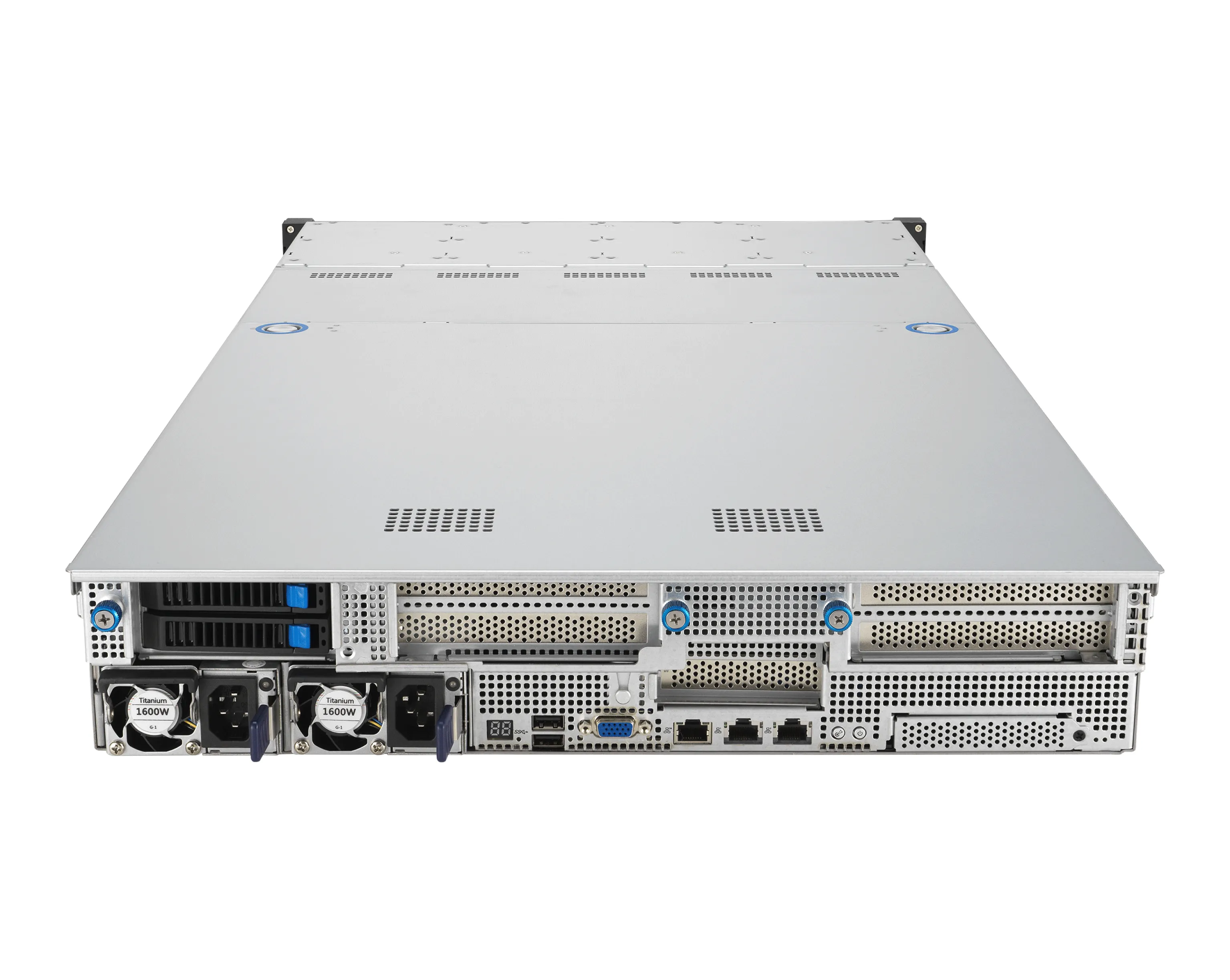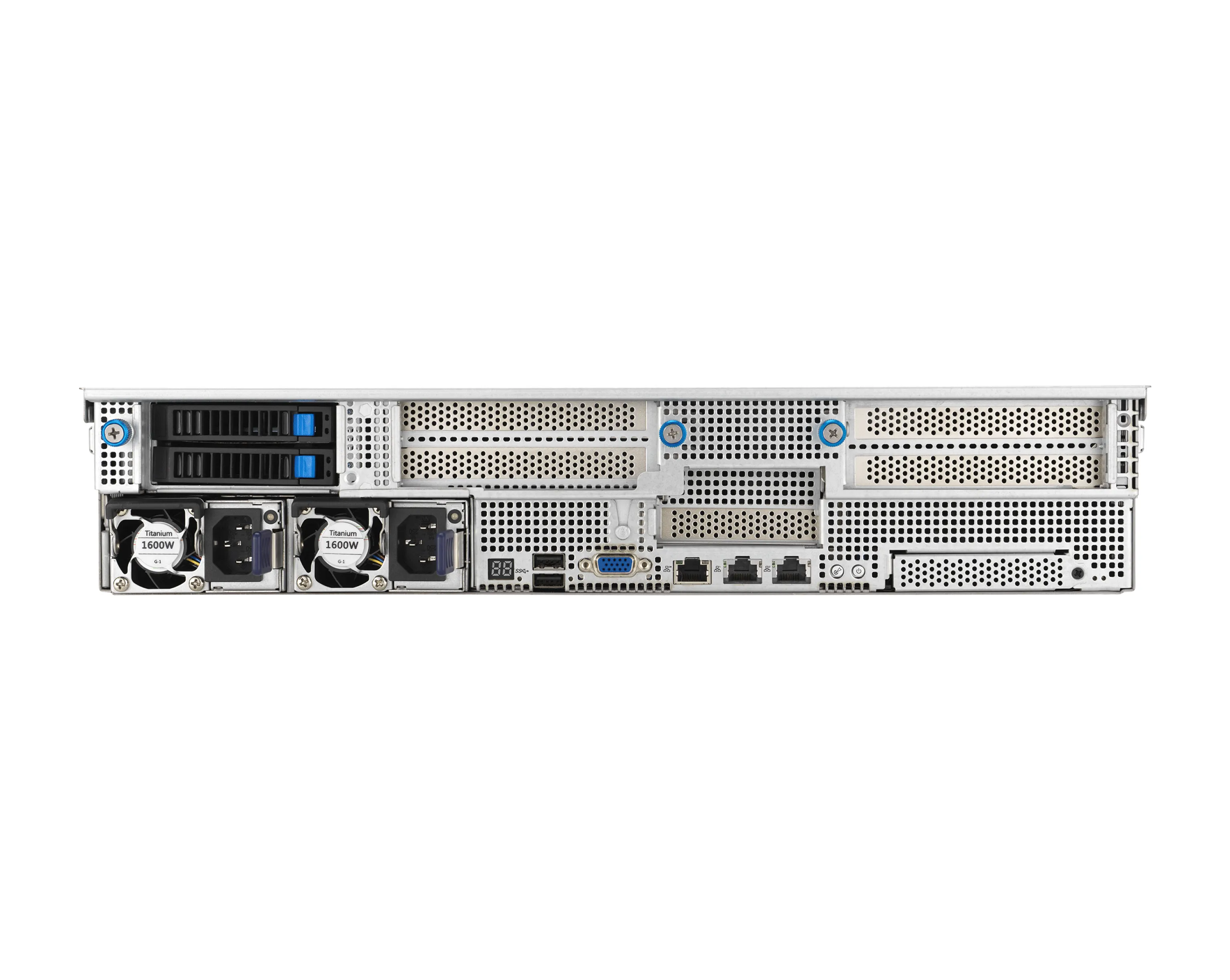 - Задняя панель: 2 hot-swap 2,5″ слота (SATA)