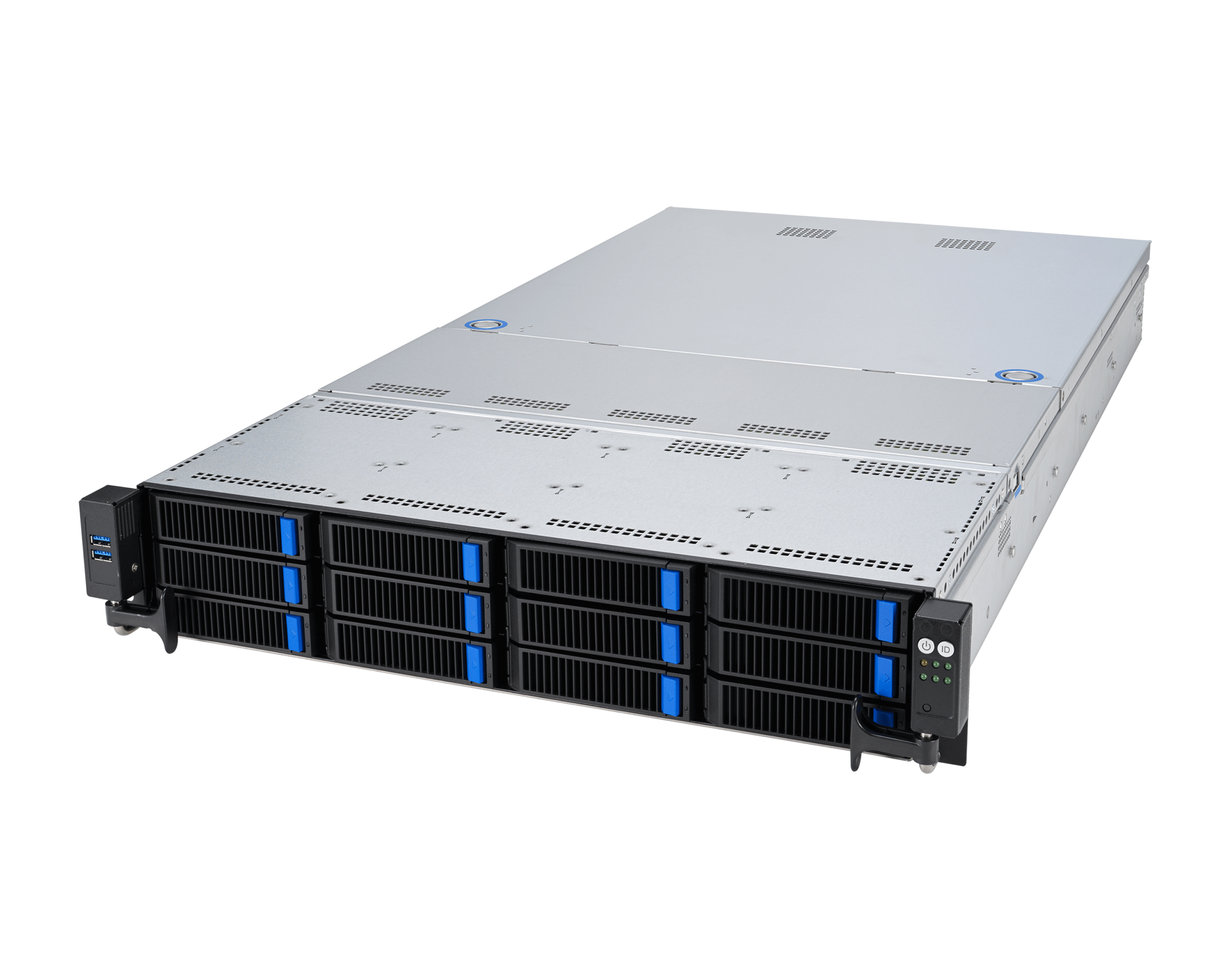 ASUS RS520A‑E12‑RS12U — это стойочный сервер формата 2U, оснащённый одним процессором AMD EPYC™ 9004, поддерживающий до 24 слотов памяти DDR5, до 12 NVMe / SATA / SAS накопителей, пять слотов PCIe 5.0, два слота M.2, модуль OCP 3.0 и возможность установки двух двухслотовых GPU. Решение ориентировано на баланс между вычислительной мощностью и ёмкостью хранения с акцентом на гибкость расширения.