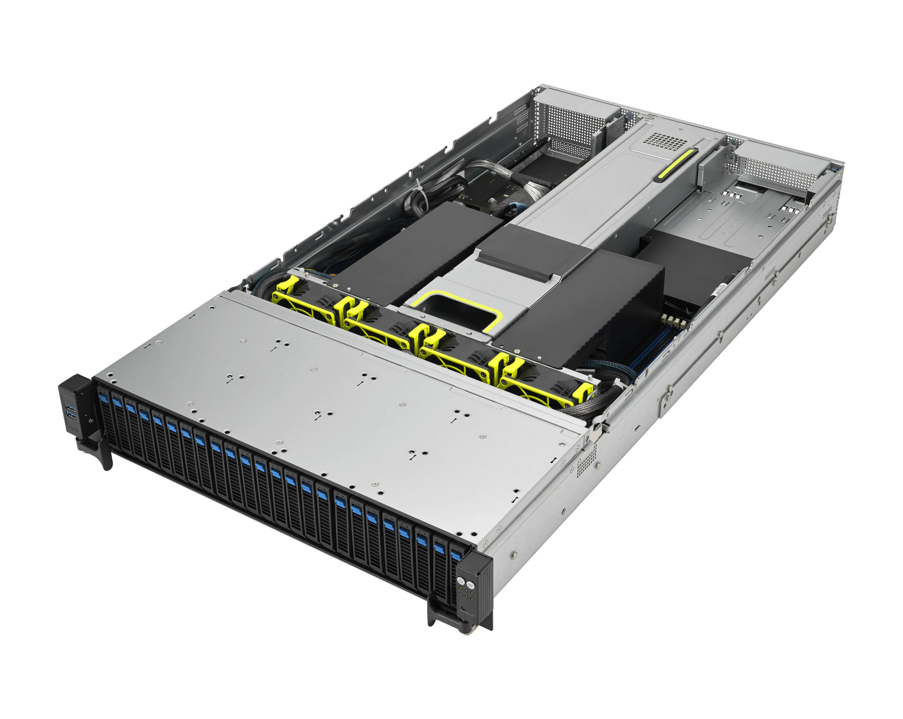 - Высокая плотность хранения: 24 NVMe‑отсека на передней панели