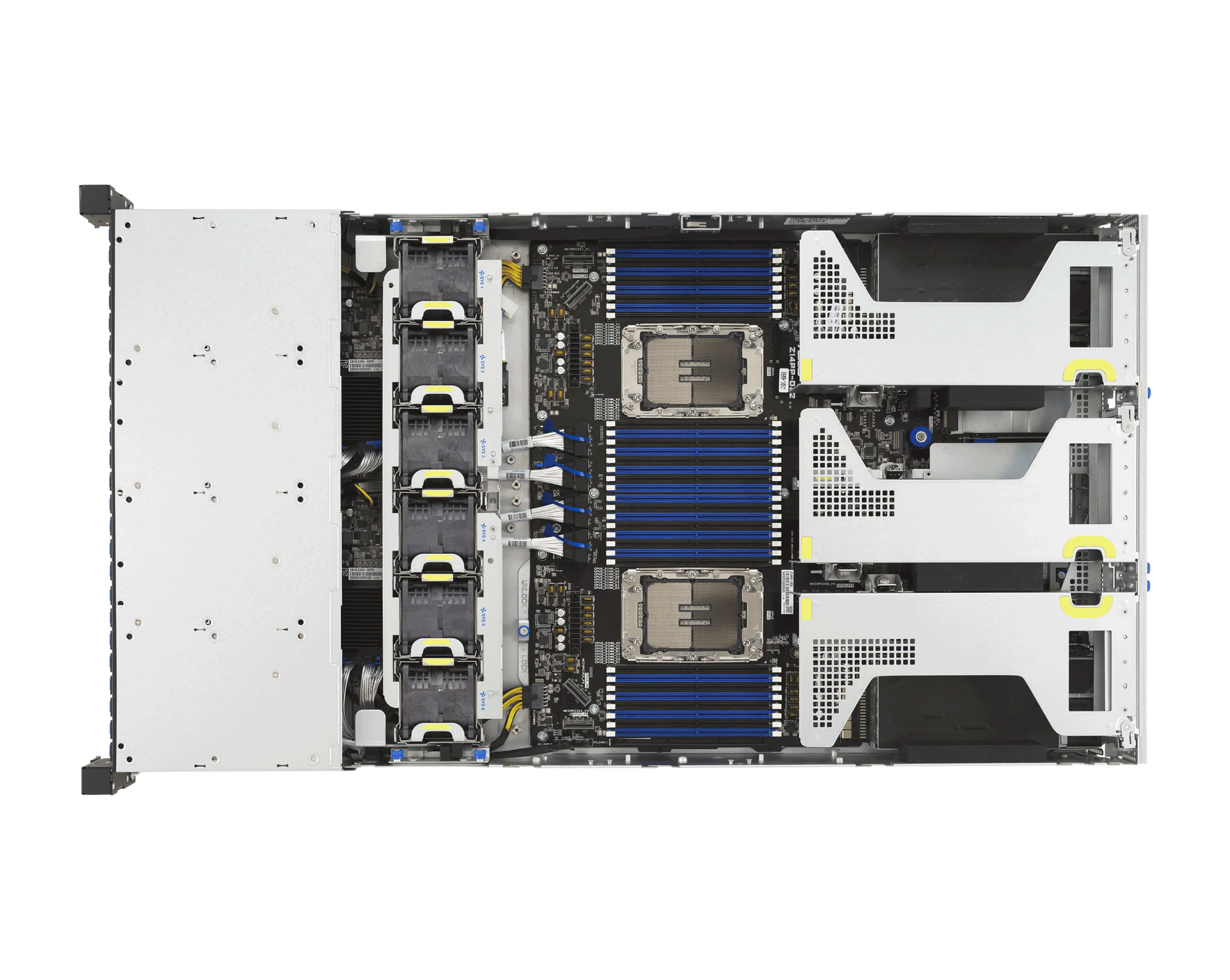 ASUS RS720‑E12‑RS24G — двухпроцессорный сервер формата 2U, спроектированный для задач, требующих как вычислительной мощности, так и большого NVMe‑хранилища. Он поддерживает установку до трёх двухслотовых GPU, до 24 hot-swap NVMe дисков, мощную подсистему памяти и современный набор слотов расширения. Идеален для систем ИИ, виртуализации, аналитики и инфраструктур в дата-центрах.