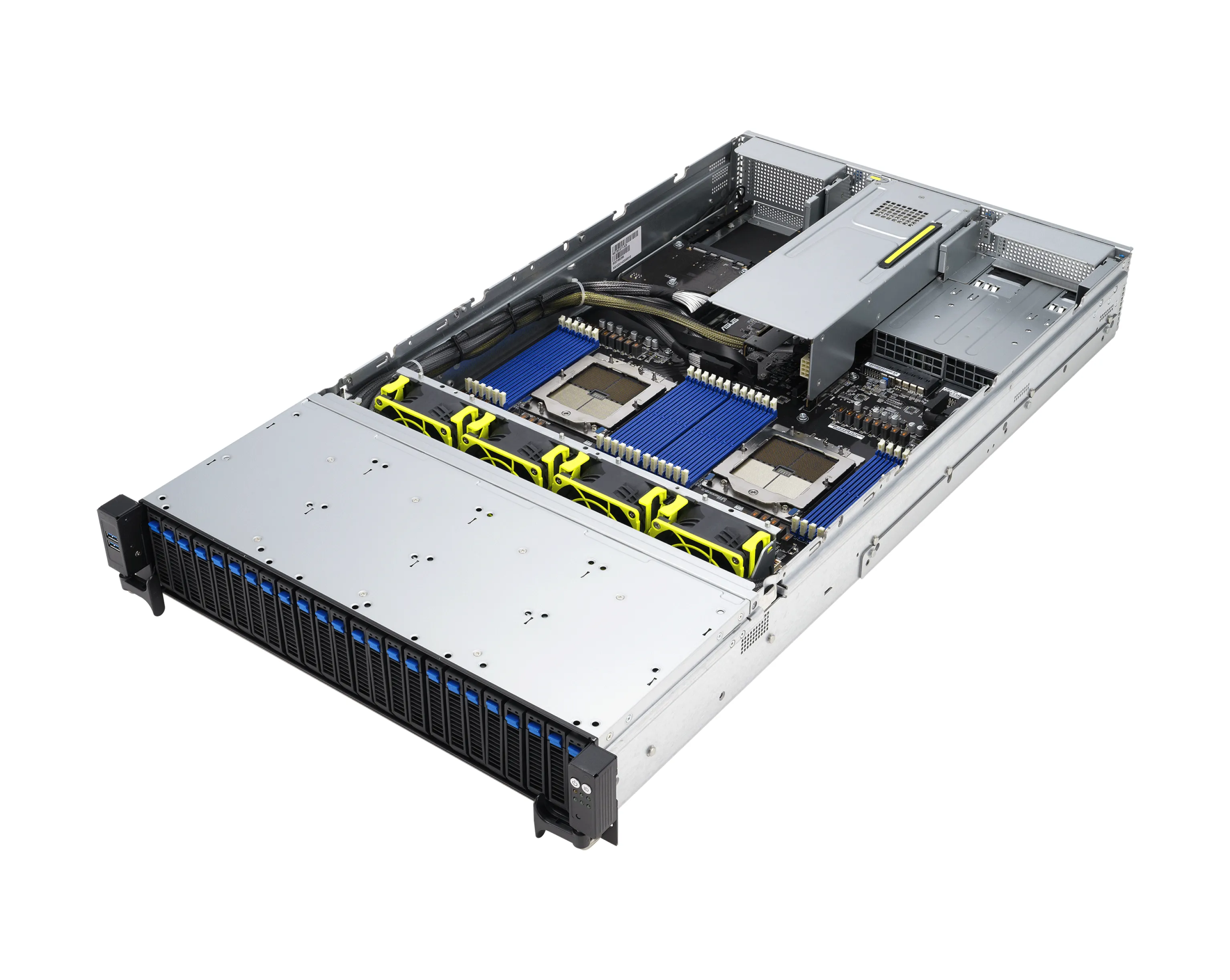ASUS RS720A‑E12‑RS24 — это стоечный сервер форм-фактора 2U, разработанный для задач вычислений, хранения данных и гибридных нагрузок. Он поддерживает два процессора AMD EPYC™ серии 9004, до 24 модулей памяти DDR5, множество слотов расширения (PCIe 5.0) и гибкие варианты хранилища (NVMe / SATA / SAS). Это решение подходит как для центров обработки данных, так и для вычислительных задач с GPU‑ускорением.