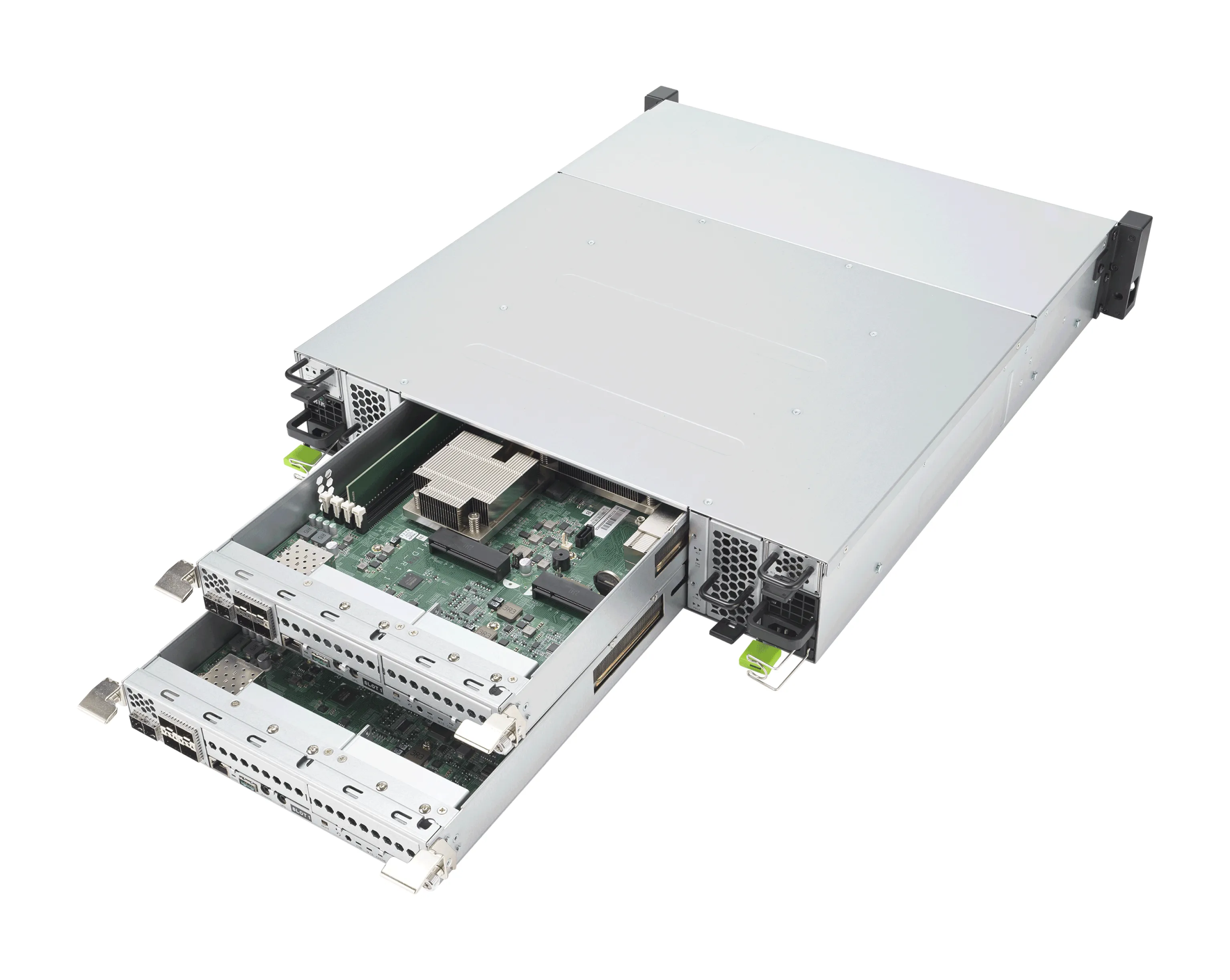 - Модульное расширение LAN: поддержка до 12 LAN-портов, включая 10GbE SFP+ и опциональные модули 25GbE или 32Gb FC.
