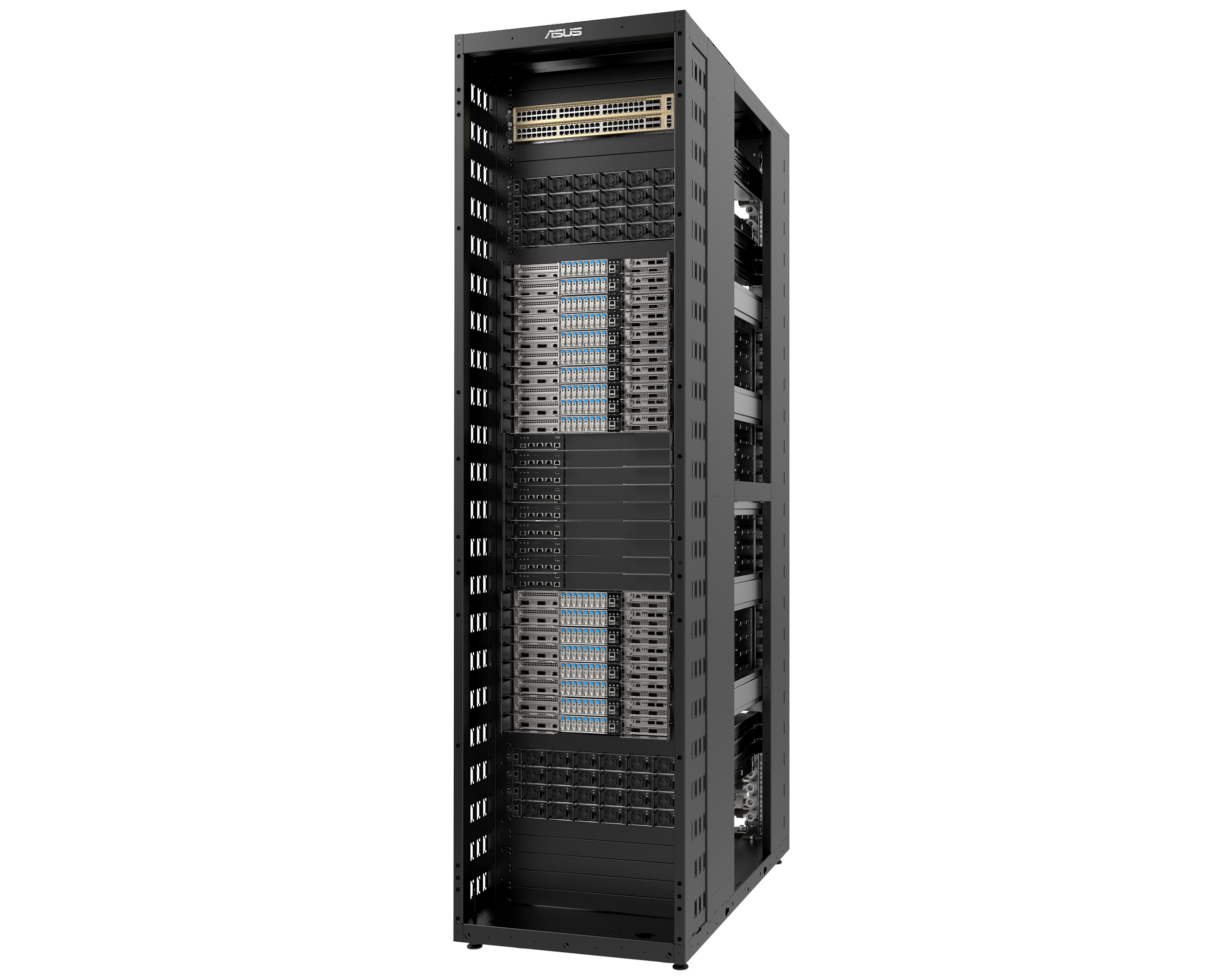 ASUS XA GB721‑E2 Rack Scale Solution с NVIDIA GB300 NVL72 - масштабируемое rack‑решение для задач на стыке искусственного интеллекта и обучения больших языковых моделей. Оснащено 36 CPU NVIDIA Grace, 72 GPU NVIDIA Blackwell Ultra и жидкостным охлаждением — обеспечивает высокую плотность вычислений и низкую стоимость владения (TCO).