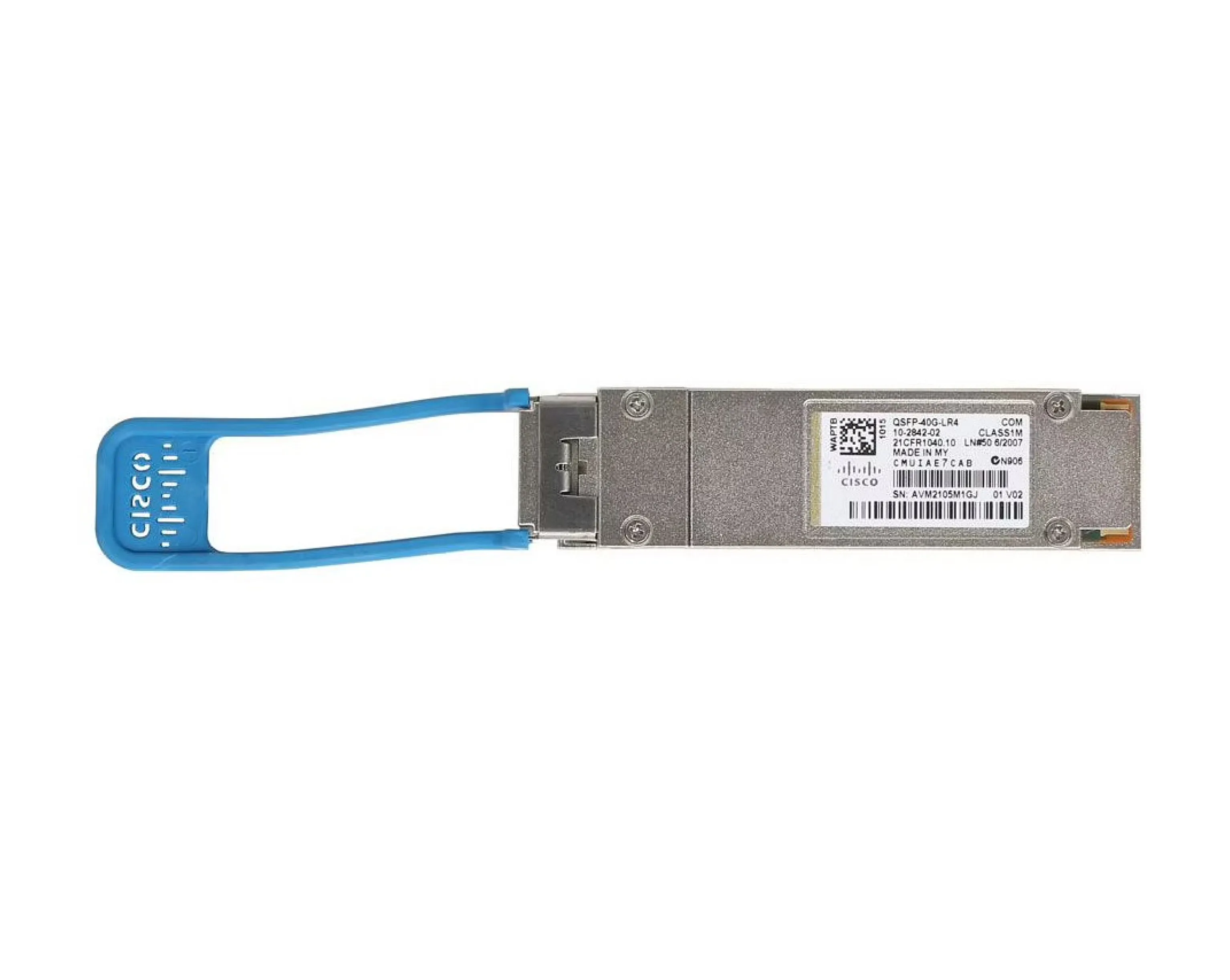 Cisco QSFP-40G-LR4 – это высокоскоростной оптический модуль стандарта QSFP+, предназначенный для организации 40-гигабитных соединений на большие расстояния по одномодовому оптоволокну.